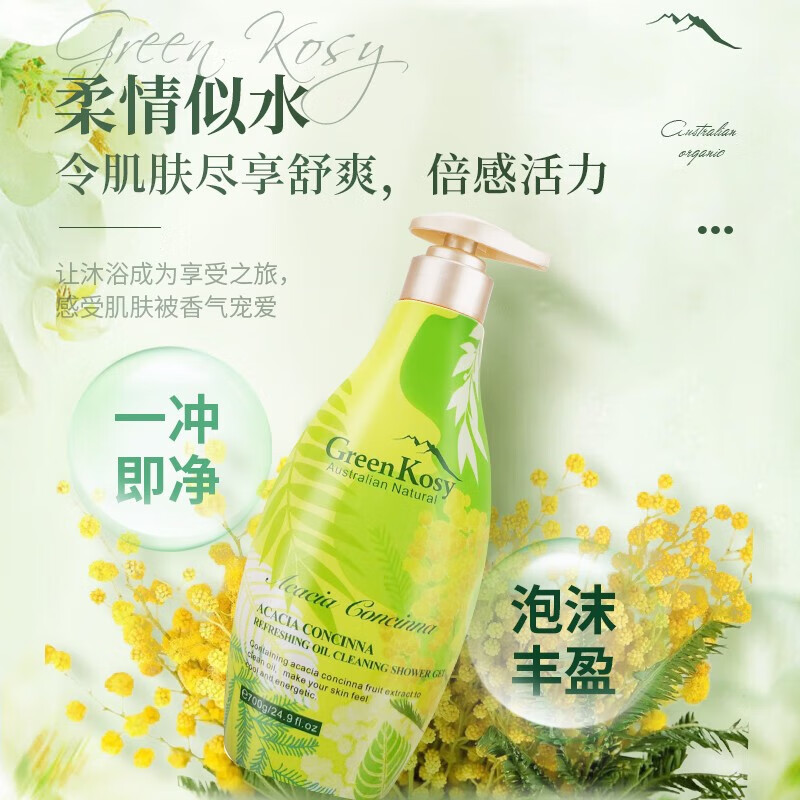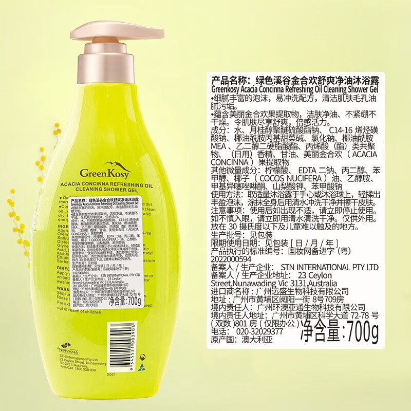 商品名称:绿色溪谷金合欢舒爽净油沐浴露 700g(单位:瓶) 香槟黄