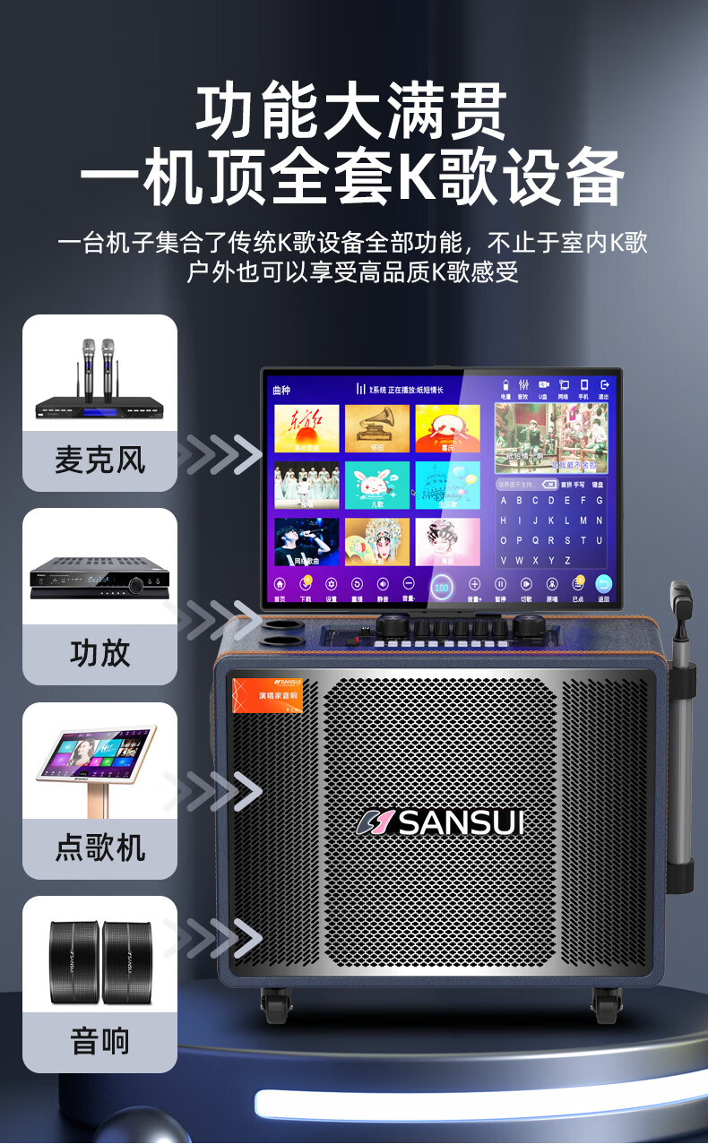 商品名称:山水(SANSUI)MQ105便携式蓝牙音响 MQ105+14.1吋屏+500G 单位:套 深灰色