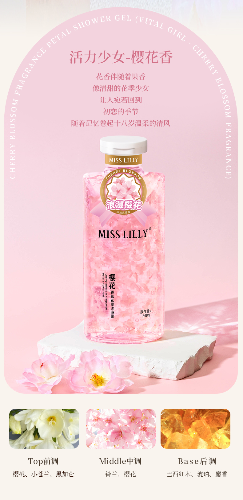 商品名称:蜜斯莉 樱花香氛花瓣沐浴露248g(计价单位:瓶) 粉色