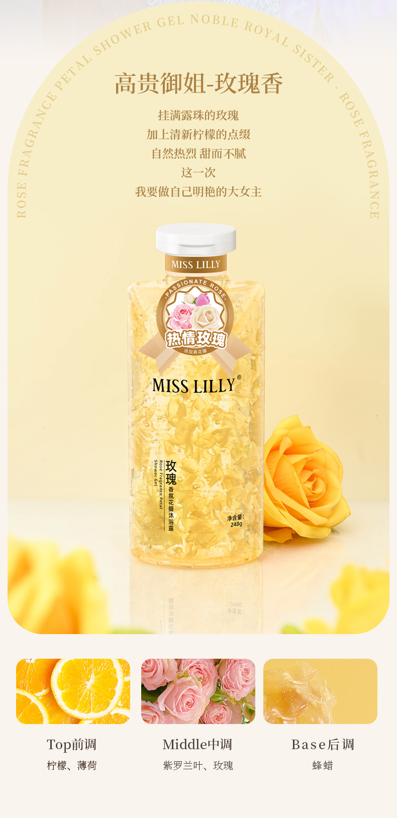 商品名称:蜜斯莉 玫瑰香氛花瓣沐浴露248g (计价单位:瓶) 玫瑰金