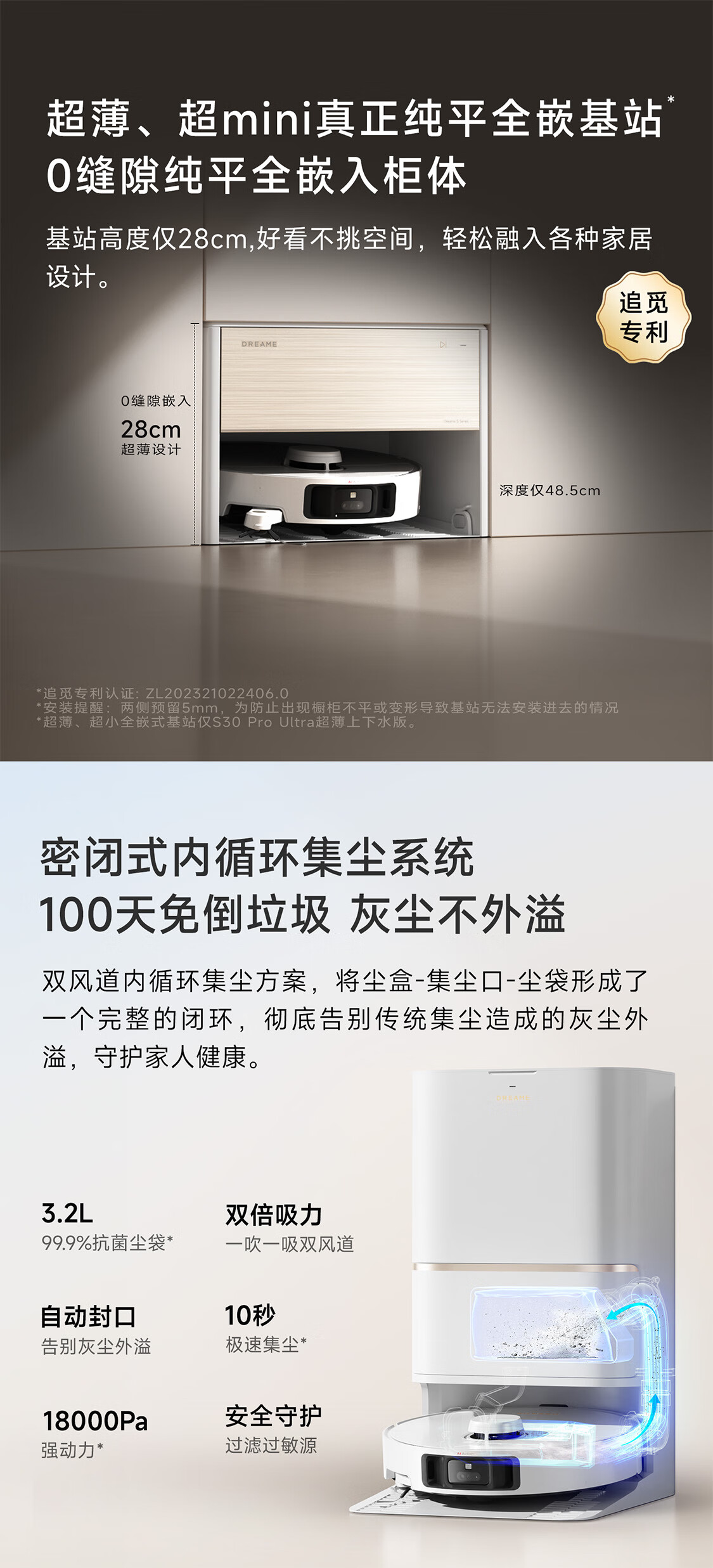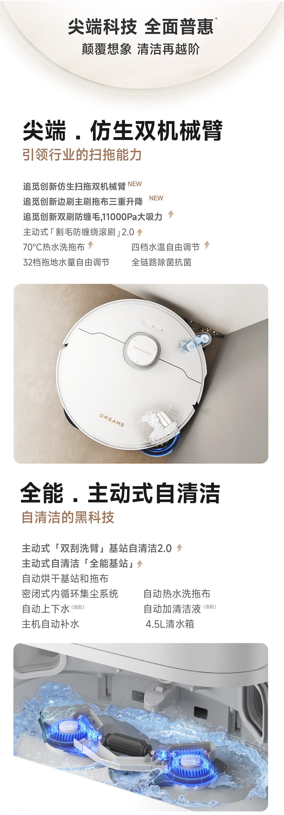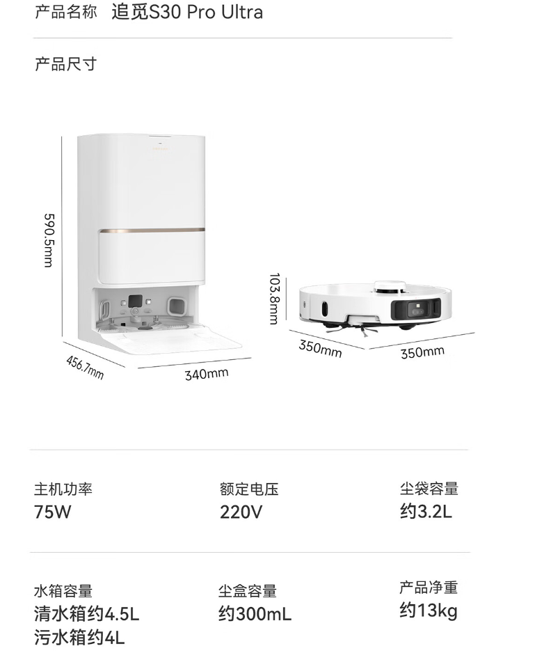 商品名称:追觅扫地机器人S30 Pro Ultra双机械臂扫洗拖一体大吸力扫地洗地机器人(单位:台) 白色