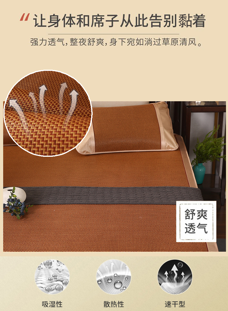 商品名称:帛享家纺 藤席三件套-宽边 单位(套)BXCXD-42832 步步高(宽边) 1.5米床