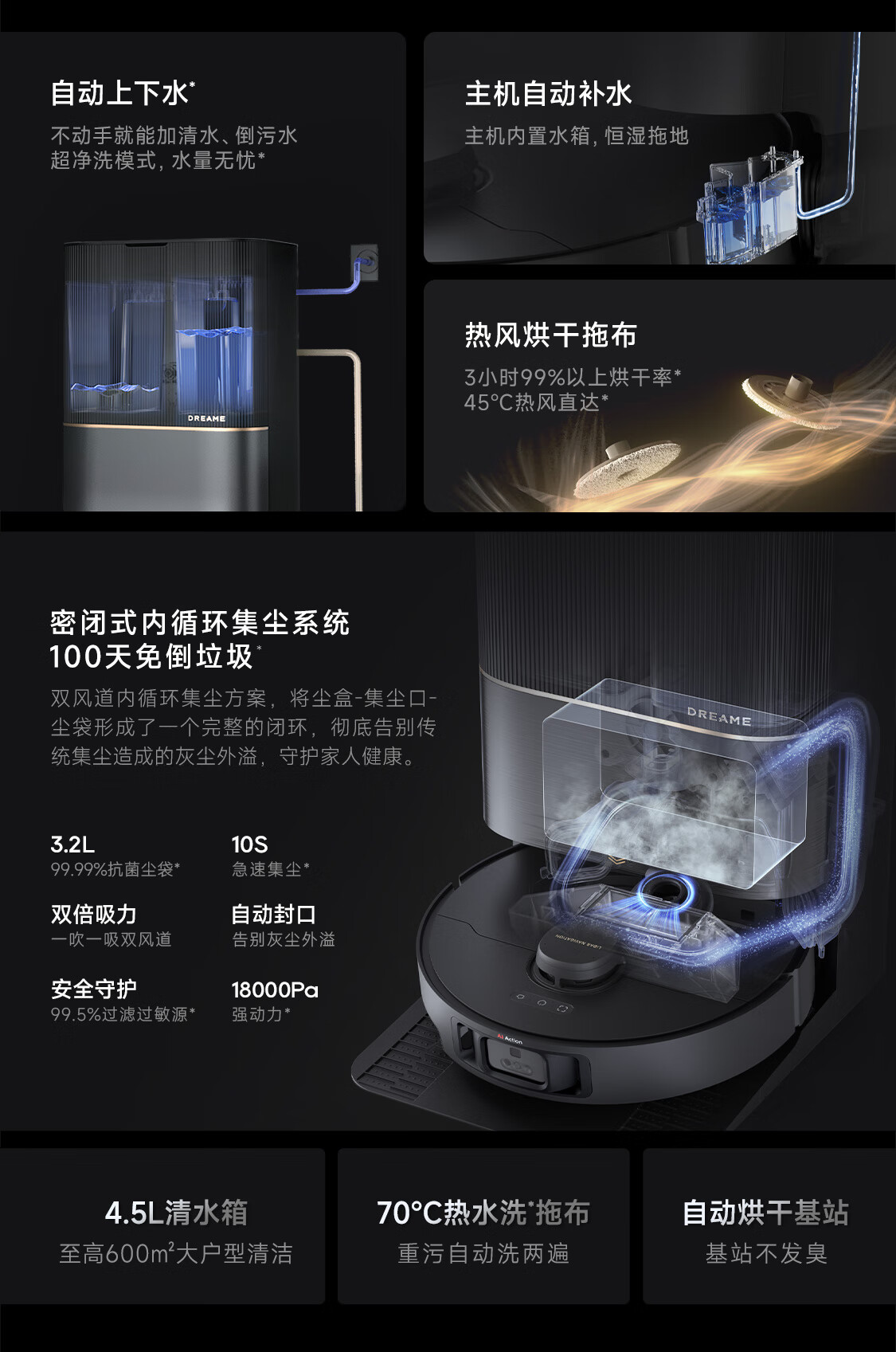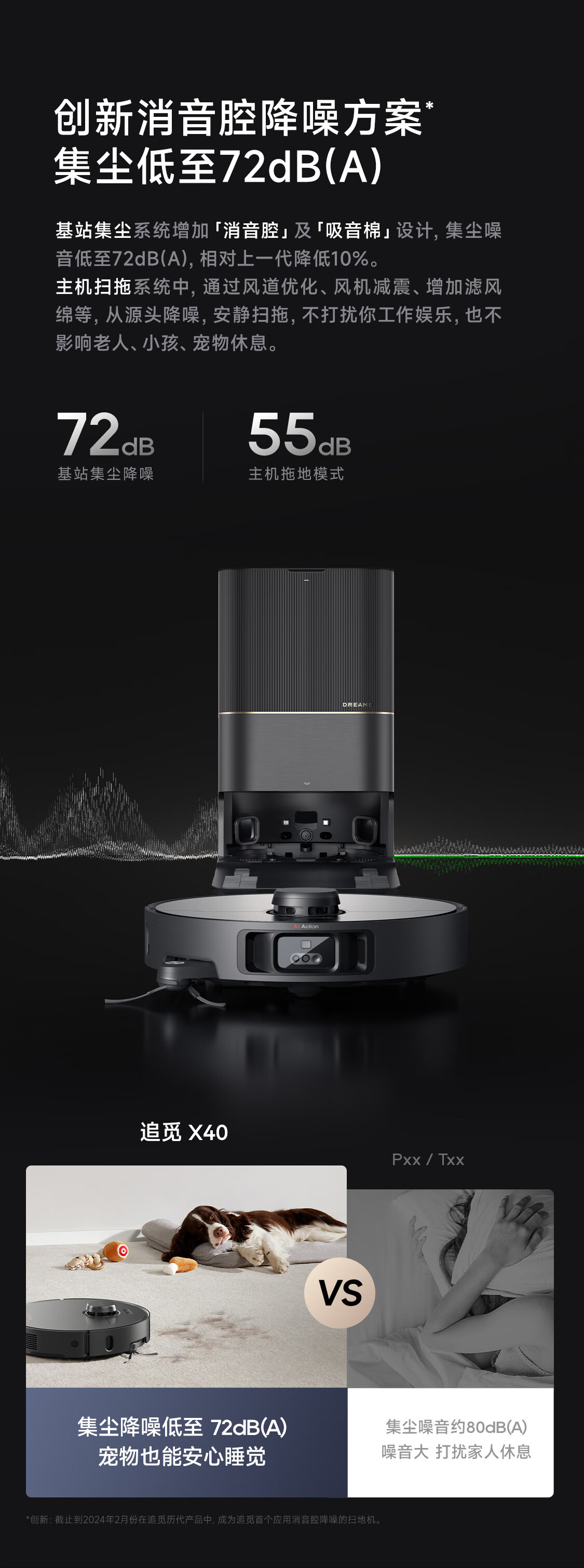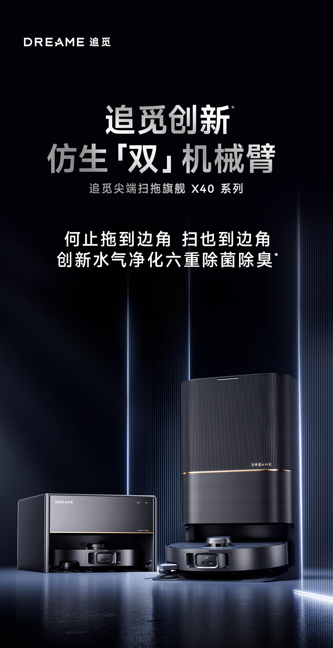 商品名称:追觅 扫地机器人X40 Pro(自动上下水版)双机械臂自动集尘大吸力洗地扫地机 单位:台 黑色
