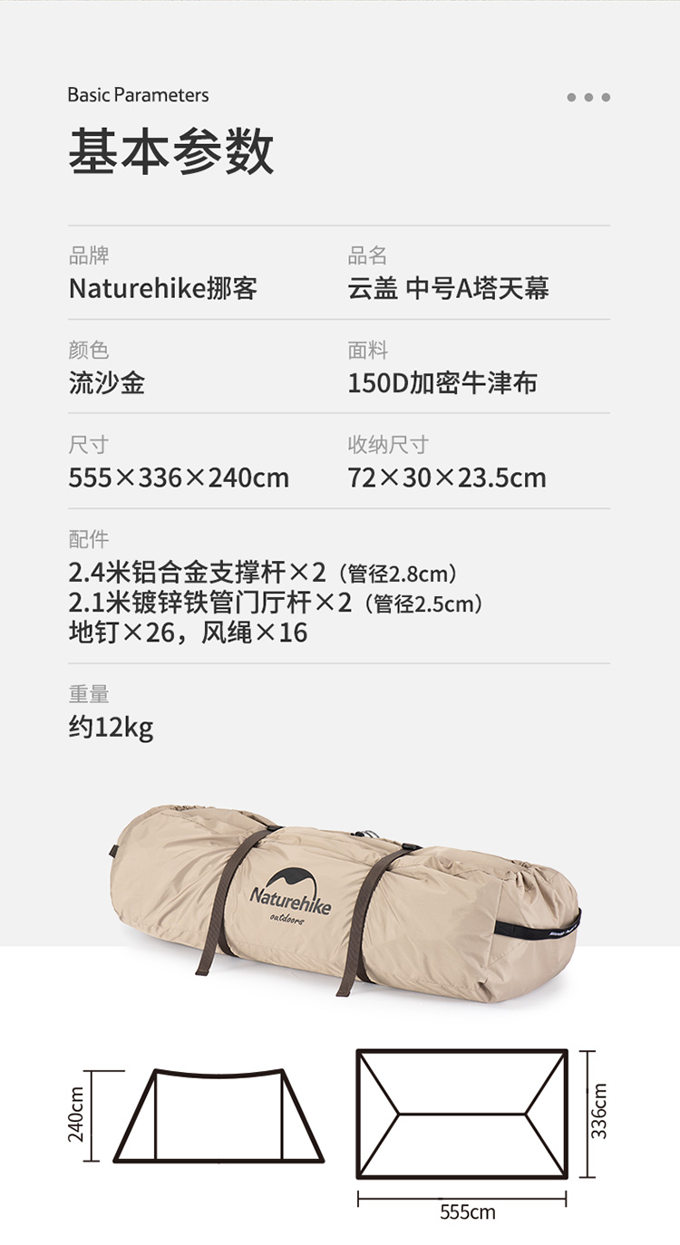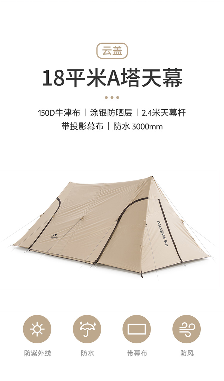 商品名称:NatureHike挪客NH20TM008云盖中号A塔天幕帐篷户外大型露营防雨防晒遮阳棚(单位:个) 流金沙