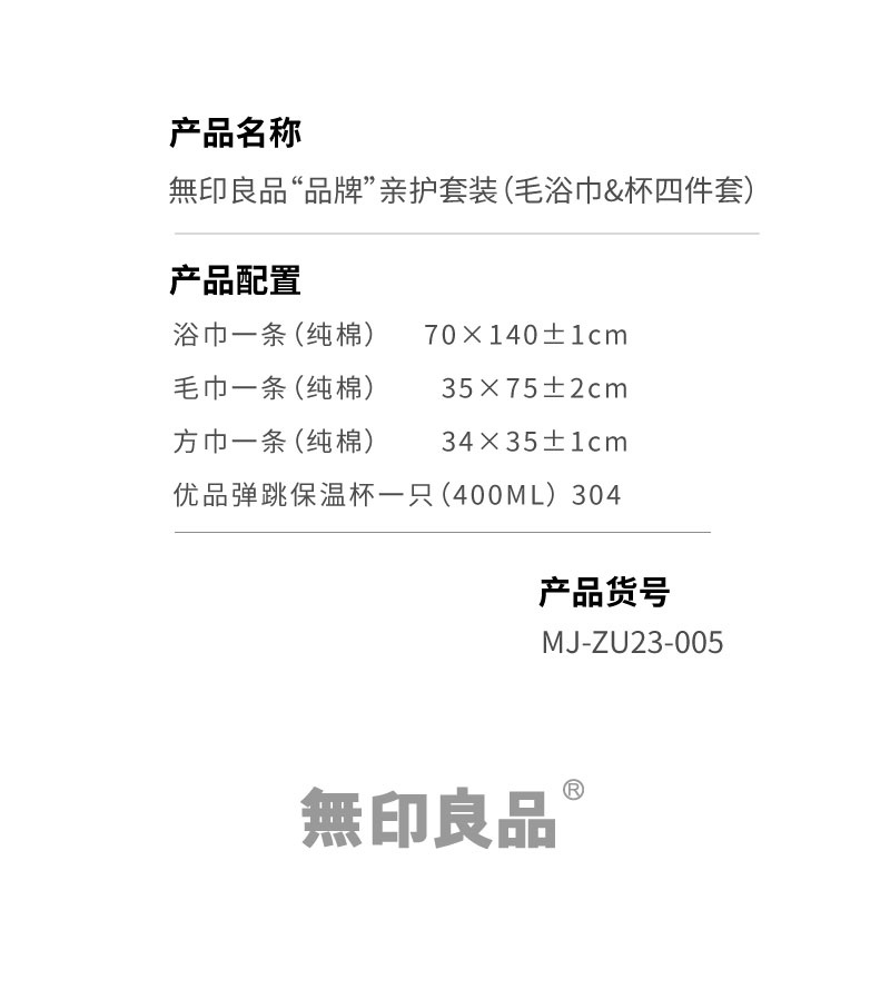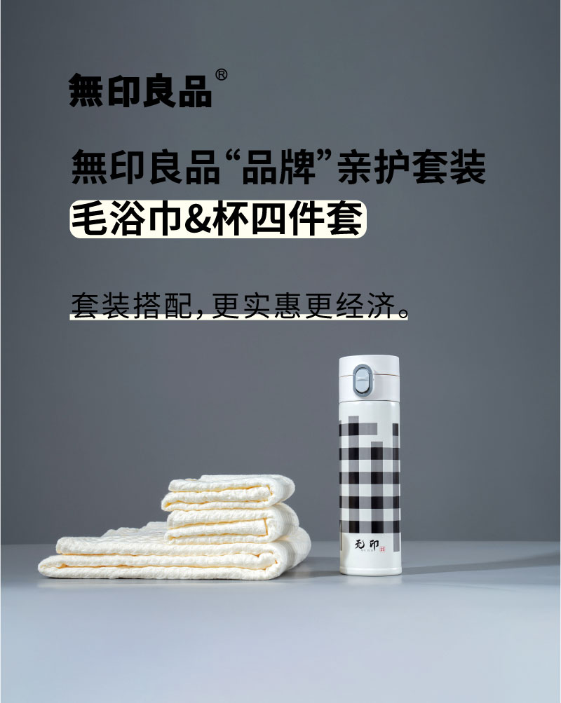 商品名称:無印良品“品牌”亲护套装 (毛浴巾&杯四件套) 白色