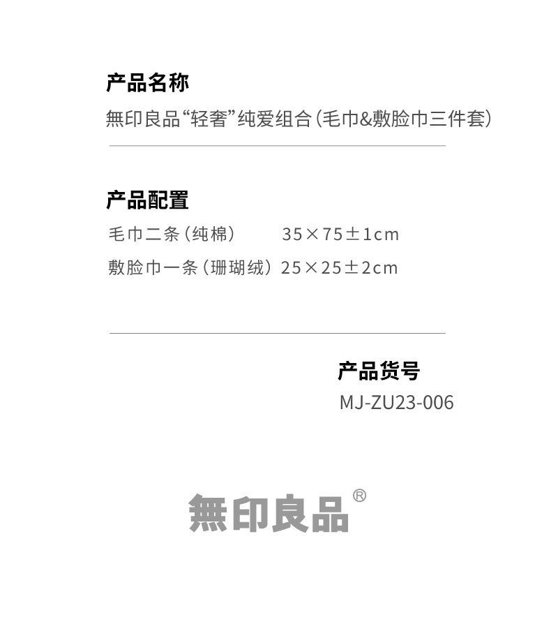 商品名称:無印良品“轻奢”纯爱组合 (毛巾&敷脸巾三件套) 白色