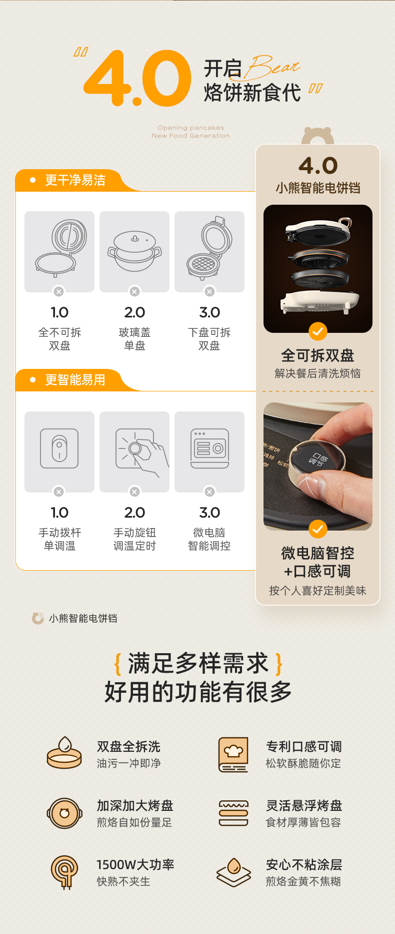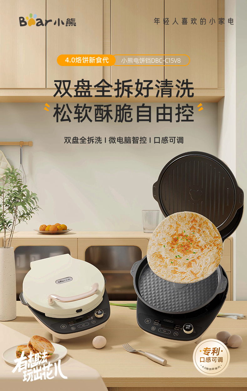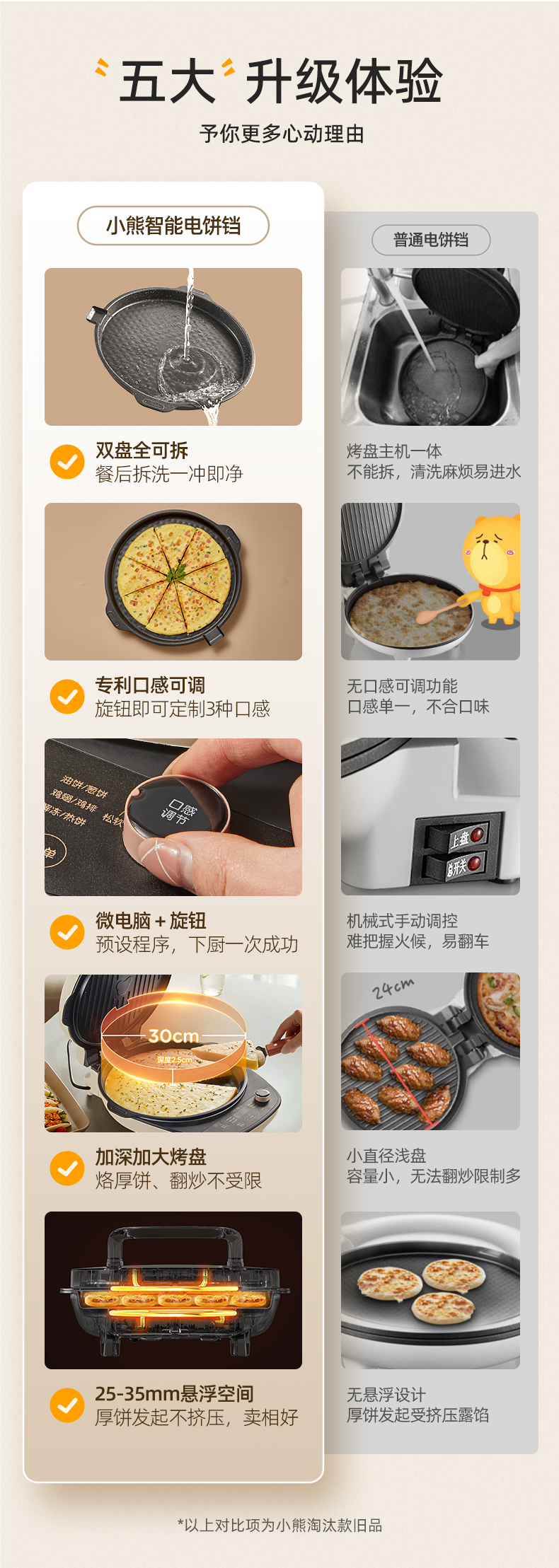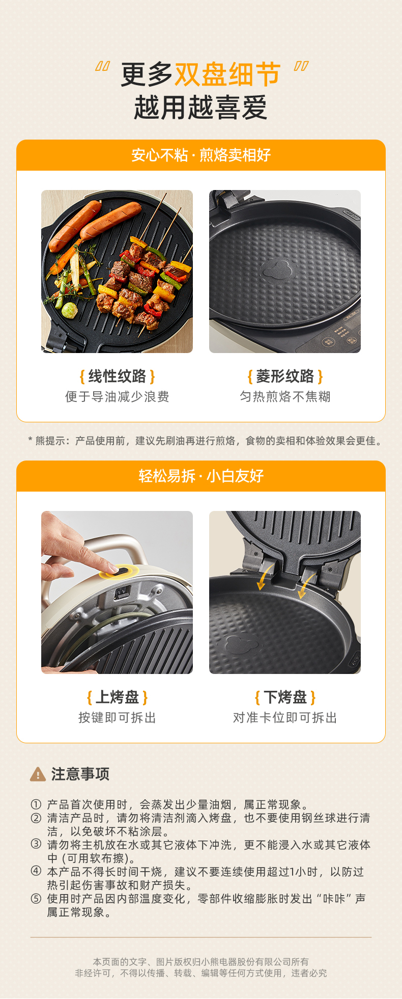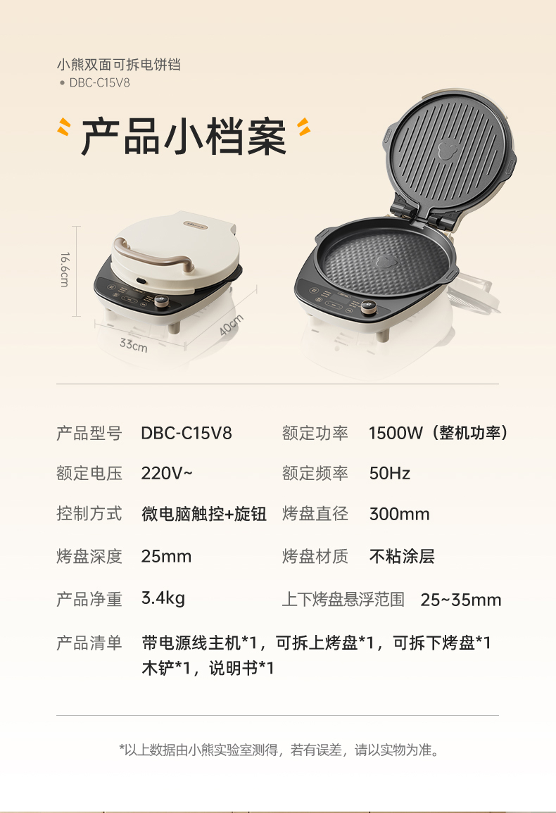 商品名称:小熊(Bear)电饼铛 双面加热加深烤盘 DBC-C15V8(台) 米黄色