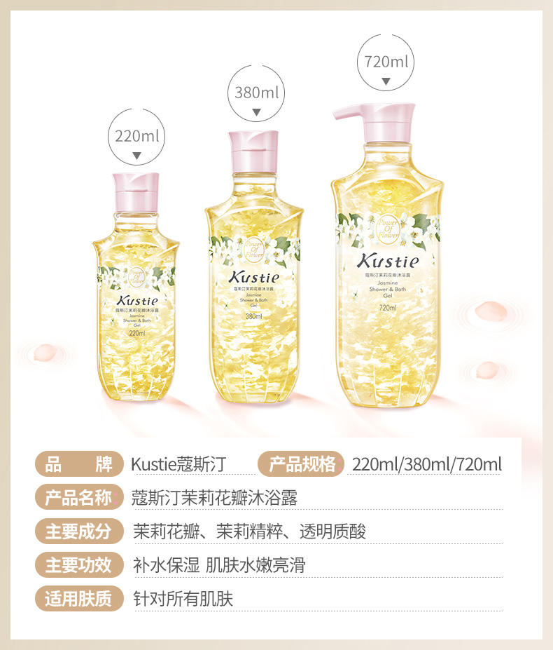 商品名称:蔻斯汀(升级版)茉莉花瓣沐浴露380ml (计价单位:瓶) 象牙色