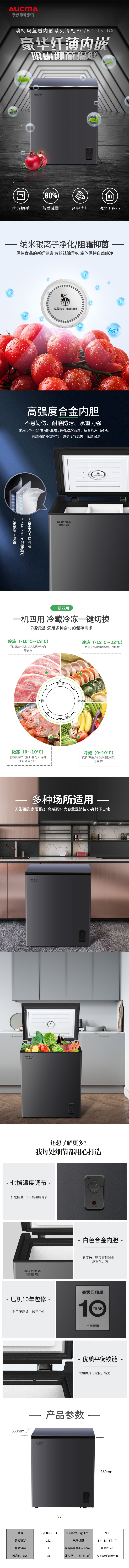 商品名称:澳柯玛(AUCMA)冰柜家用151升小冷柜 冷藏冷冻单温转换BC/BD-151GX(单位:台) 星蕴灰
