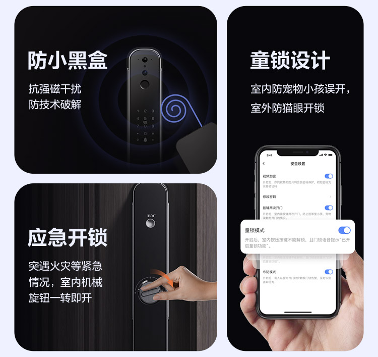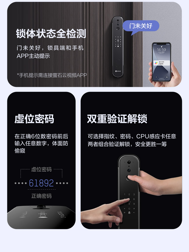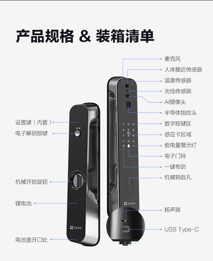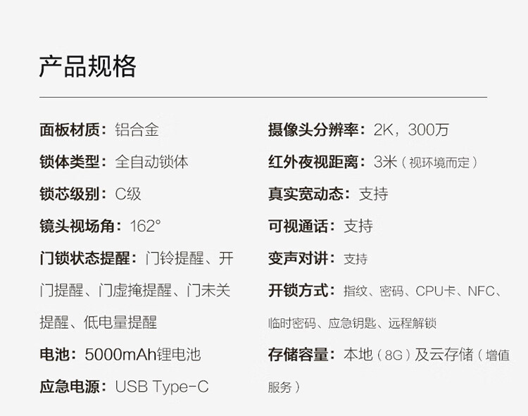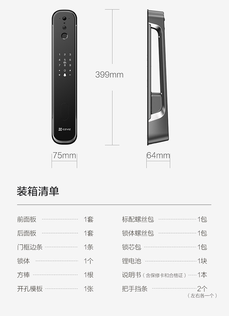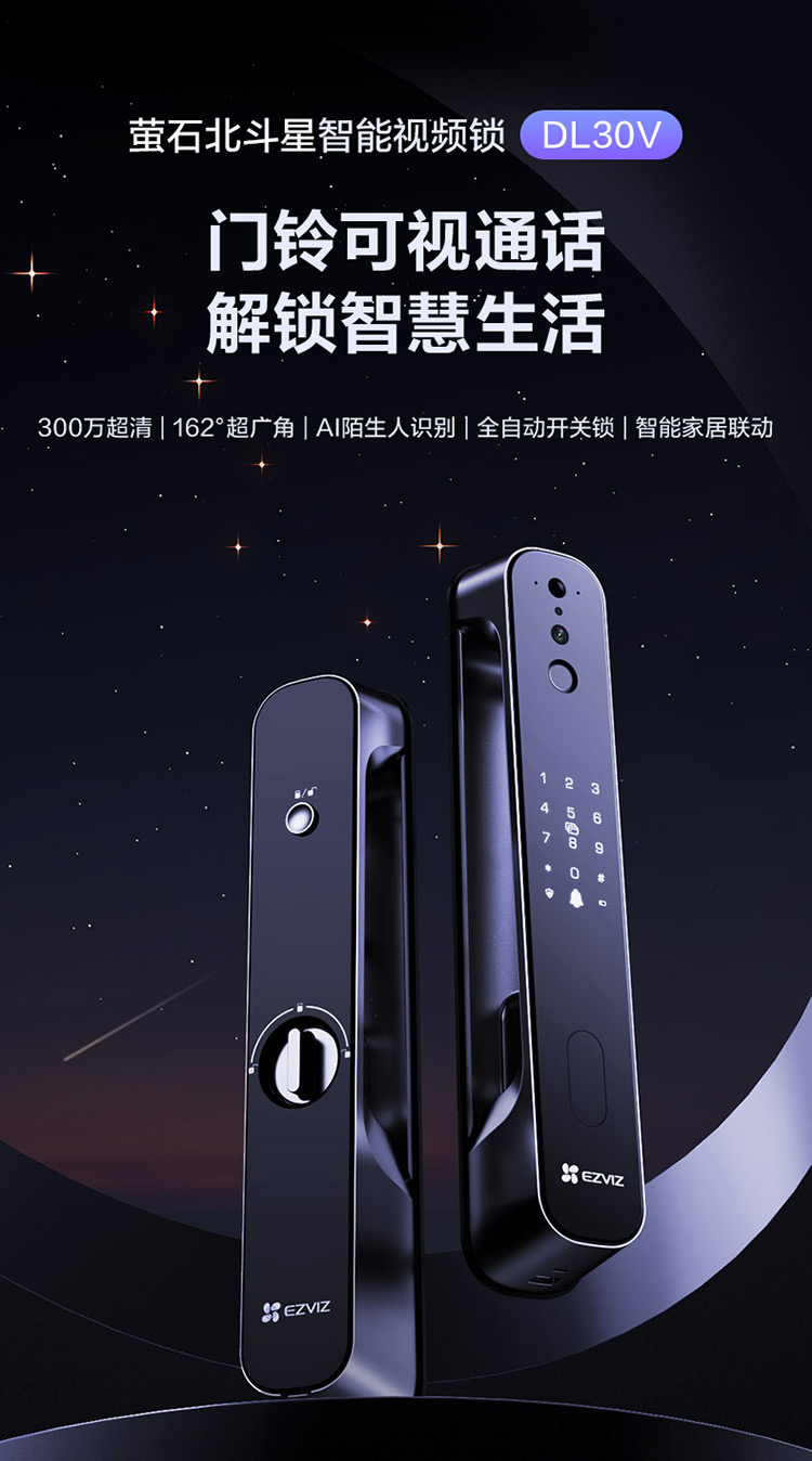 商品名称:萤石30V 智能视频锁、可视通话(含安装)单位:个 黑色