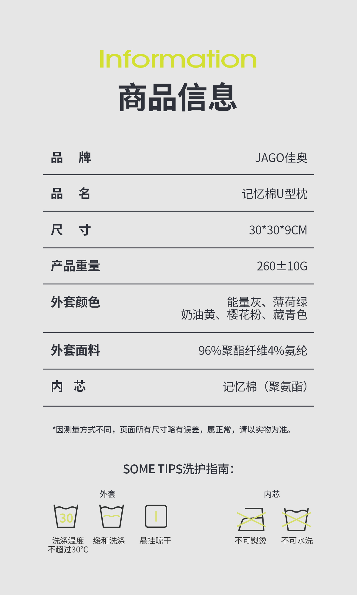 商品名称:佳奥记忆棉U型枕【高密度记忆棉 释放颈椎压力】(单位:个) 鹅仔黄