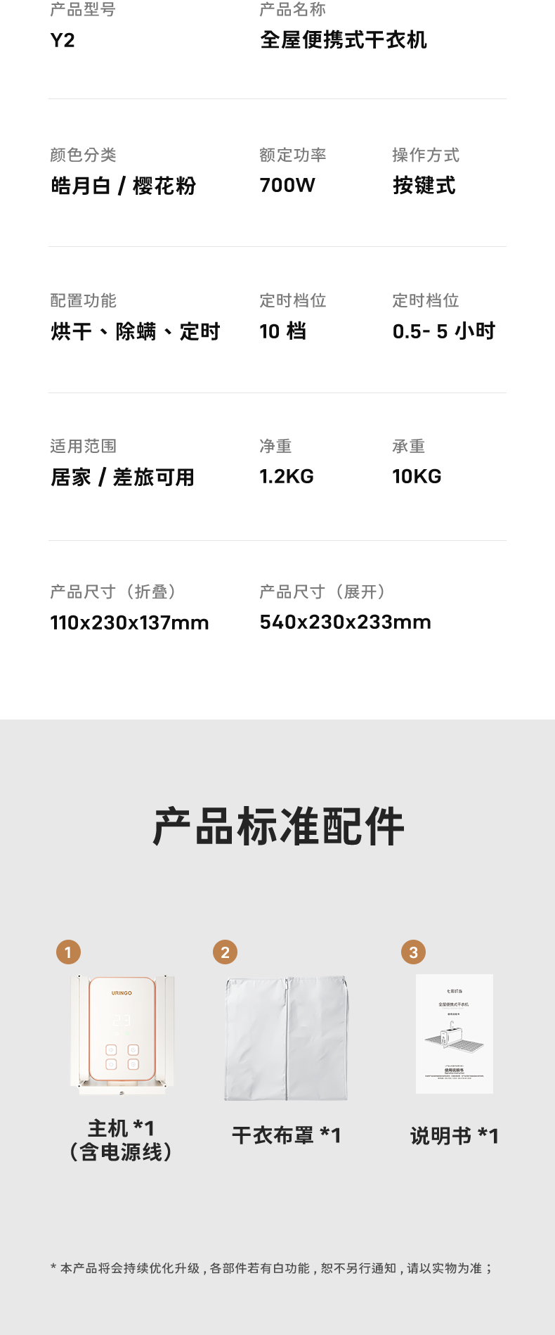 商品名称:七彩叮当Y2全屋便携式干衣机(单位:台) 白色
