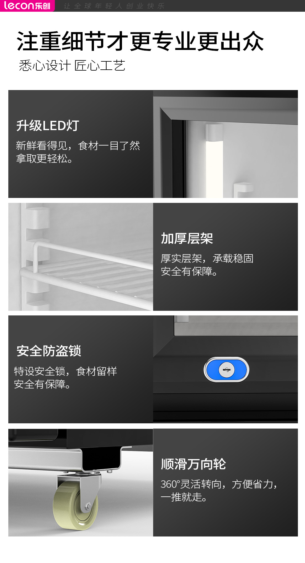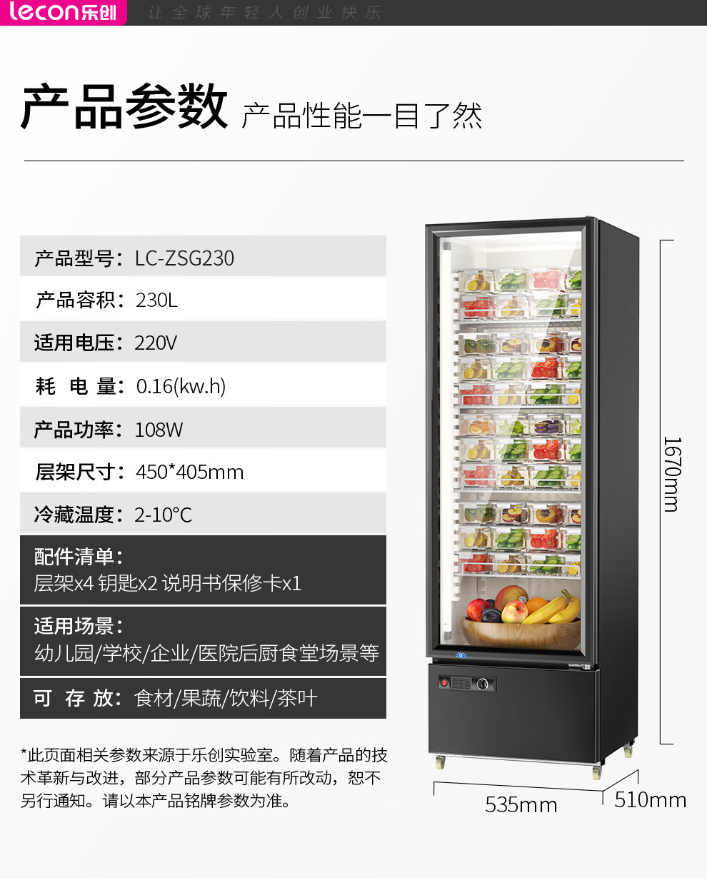 商品名称:乐创(lecon)水果蔬菜保鲜柜 食品留样柜 食堂用冷藏柜 LC-ZSG230 台 黑色