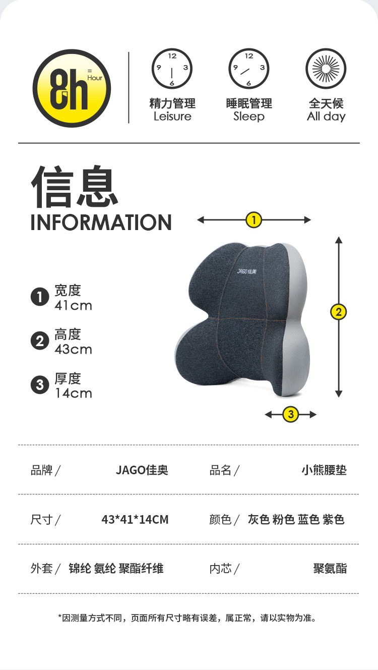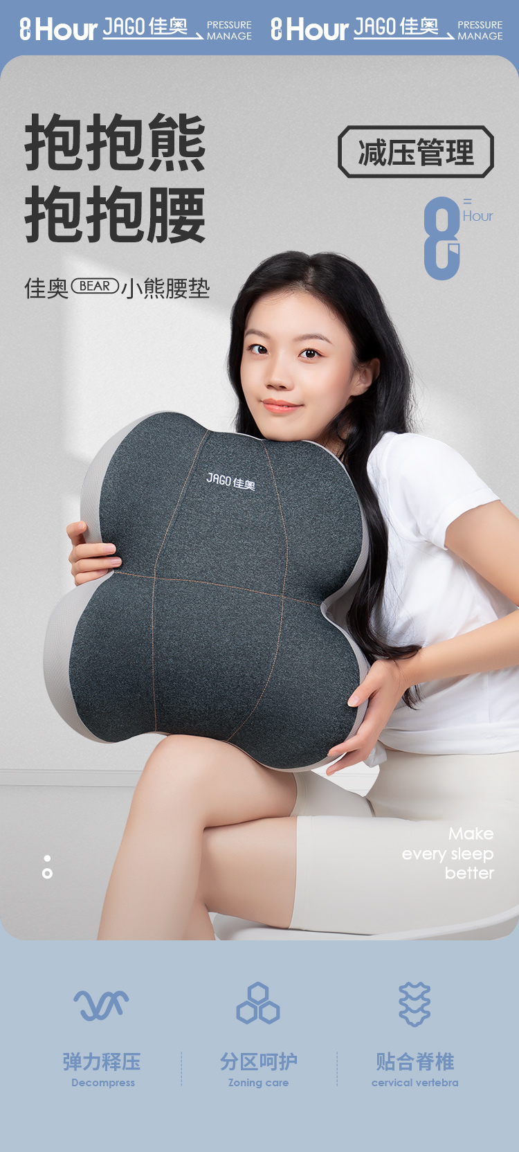商品名称:佳奥 小熊腰垫 升级磁力款 护腰靠垫抱枕腰靠办公室座椅腰枕孕妇靠枕椅子久坐腰部支撑 单位:个 蓝色