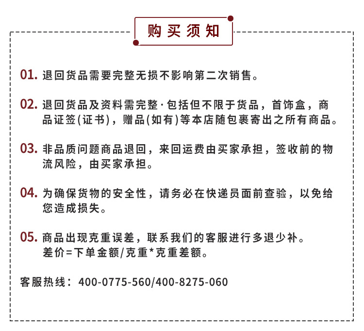 5.若退回商品有缺件、影响二次销售状况时,退款作业将暂时停止,留芳商城会依商品状况报价,后由客服人员与您联系说明并于订单内扣除费用后退回剩余款项, 或您可以取消退货申请;若符合退货条件者将于商品取回后约1-2个工作日内完成退款