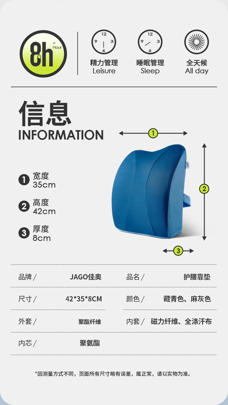 商品名称:佳奥 护脊腰垫竹炭升级款 230608J0115MB6 单位:个 中灰色