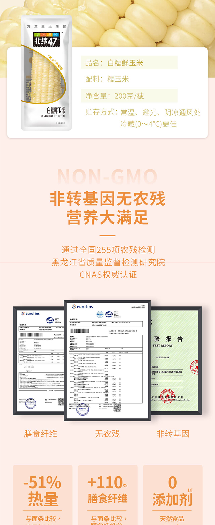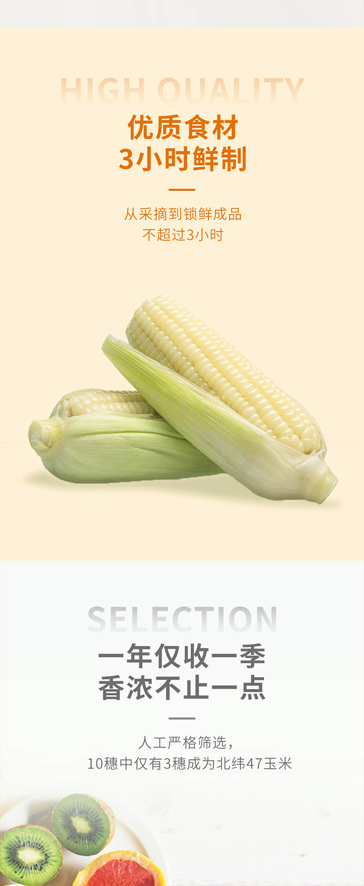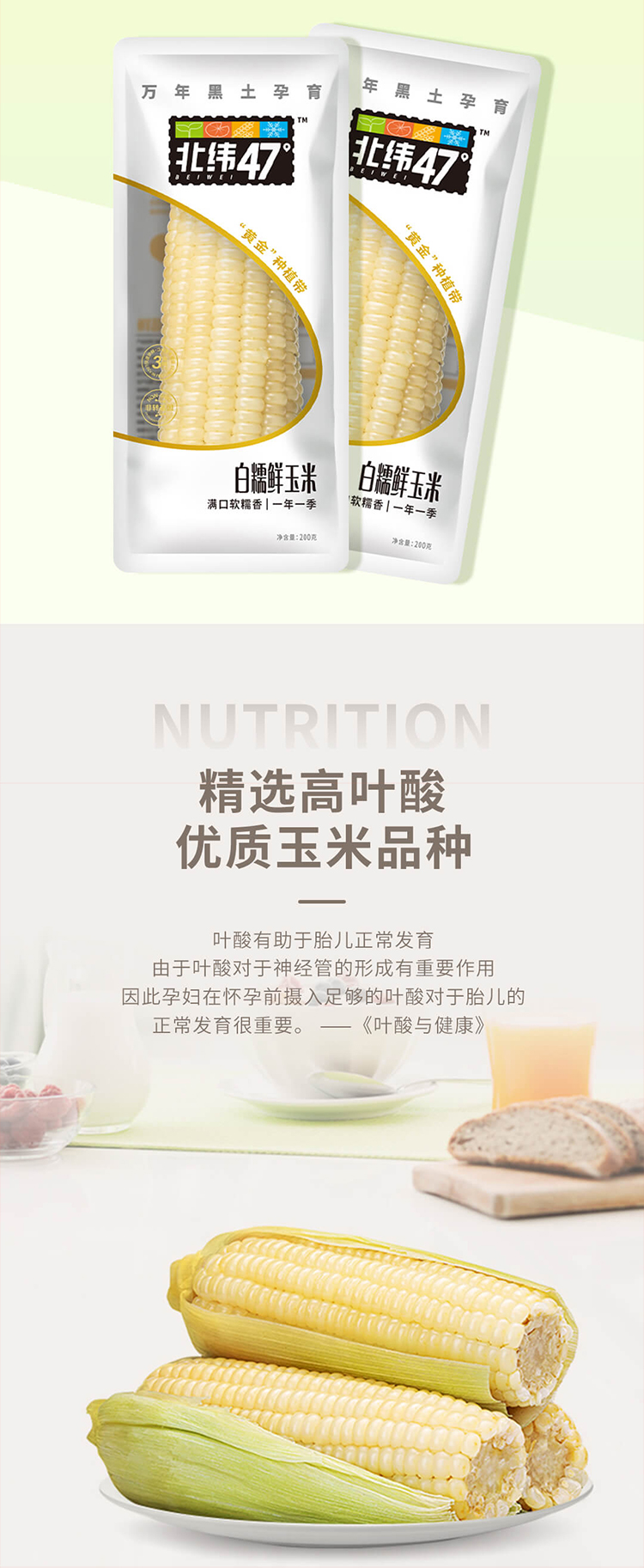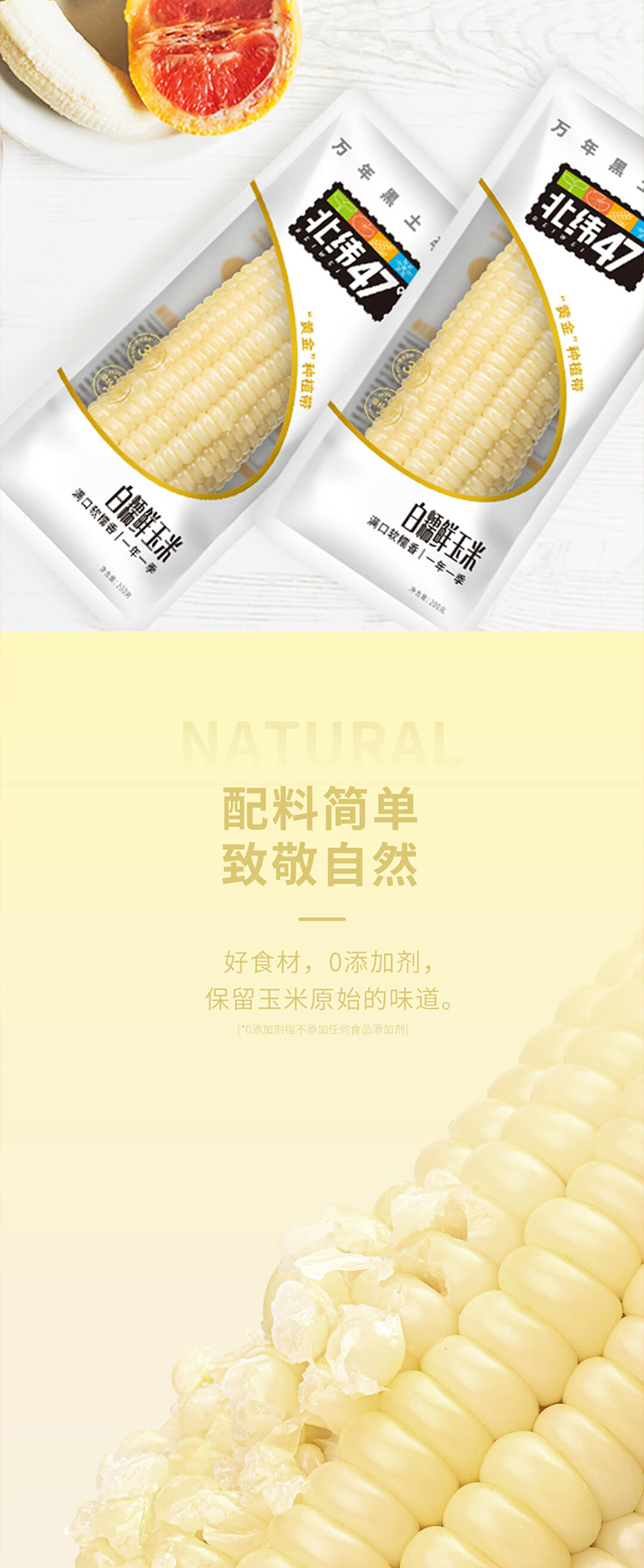 商品名称:北纬47°白糯鲜玉米220g*10/盒 拿铁色