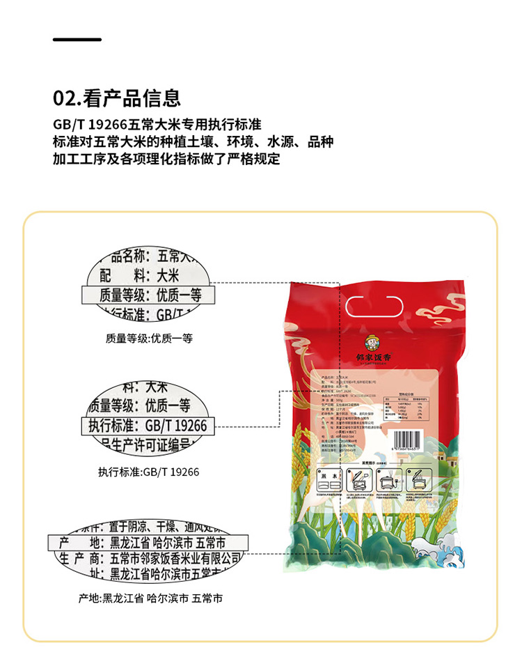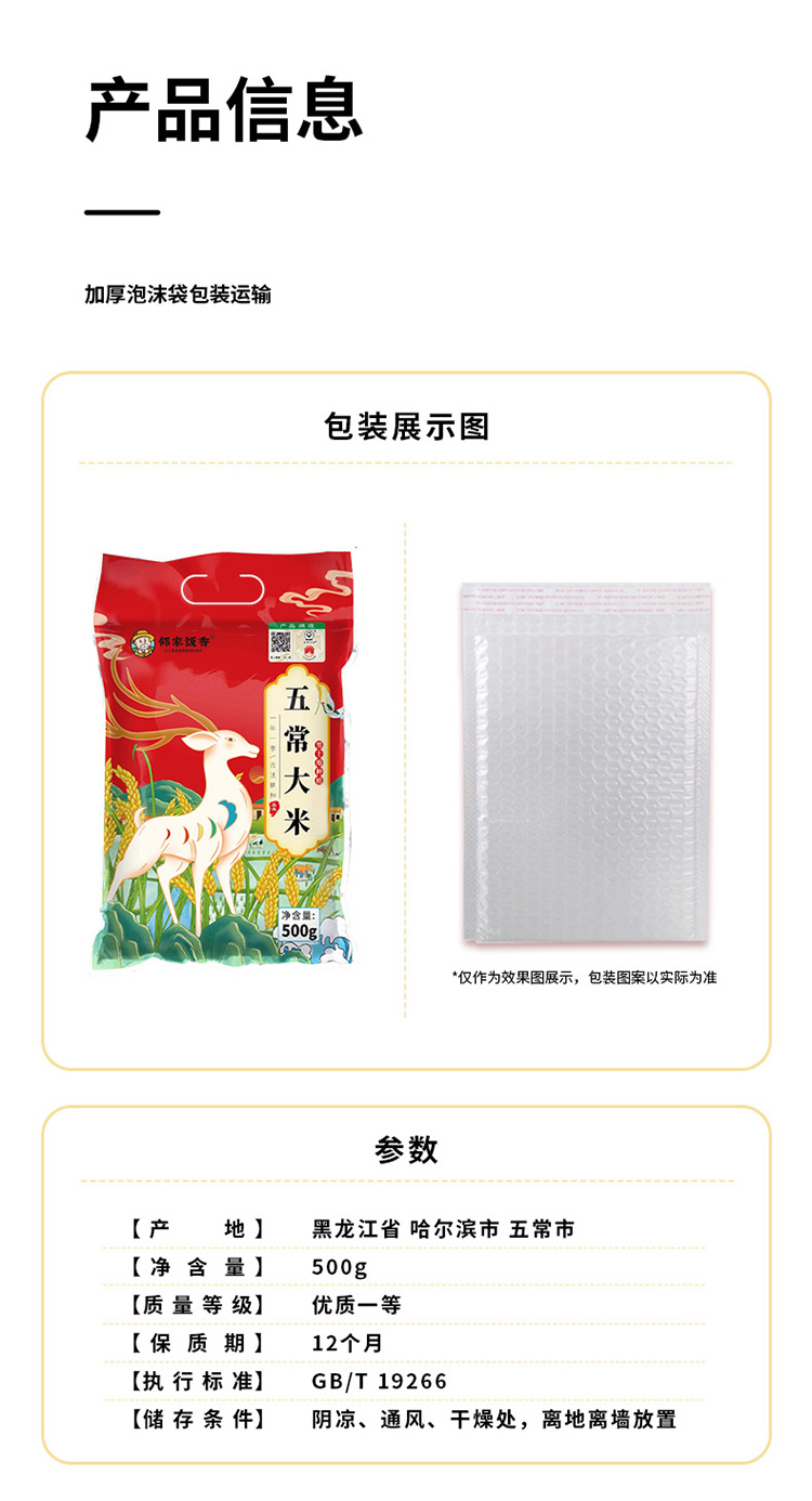 商品名称:邻家饭香 二级产区五常大米 LJFX19-W 500g 混色(单位:袋)