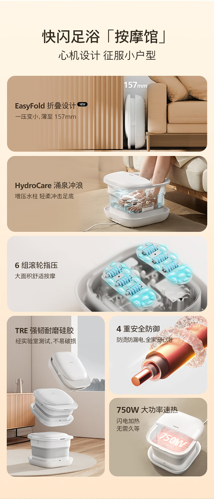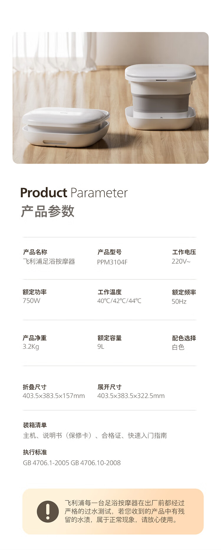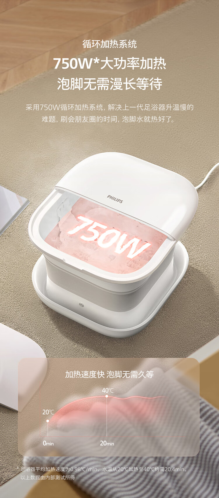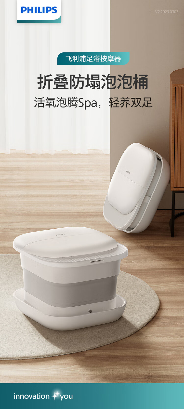商品名称:飞利浦泡脚桶折叠足浴盆电动恒温加热按摩足浴桶PPM3104F 单位:台 白色