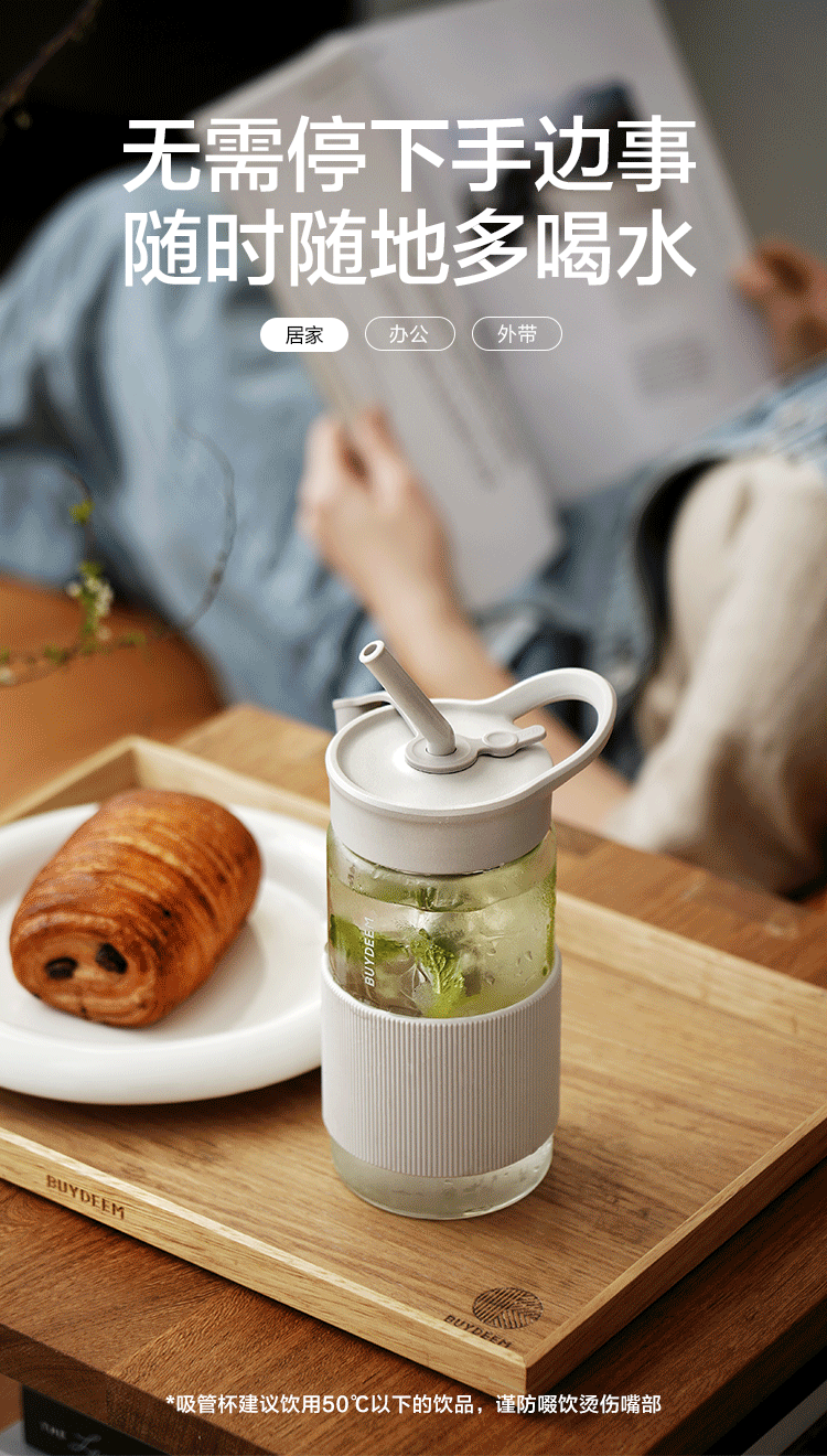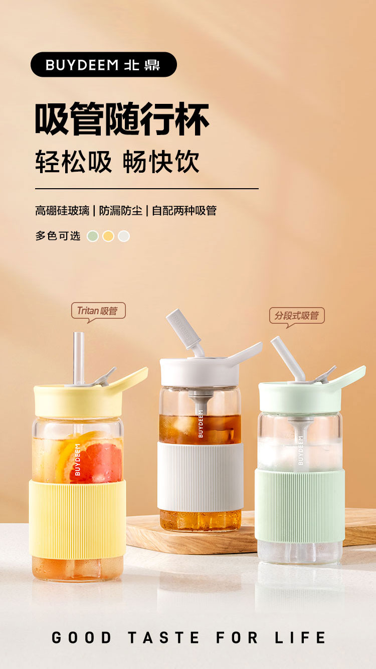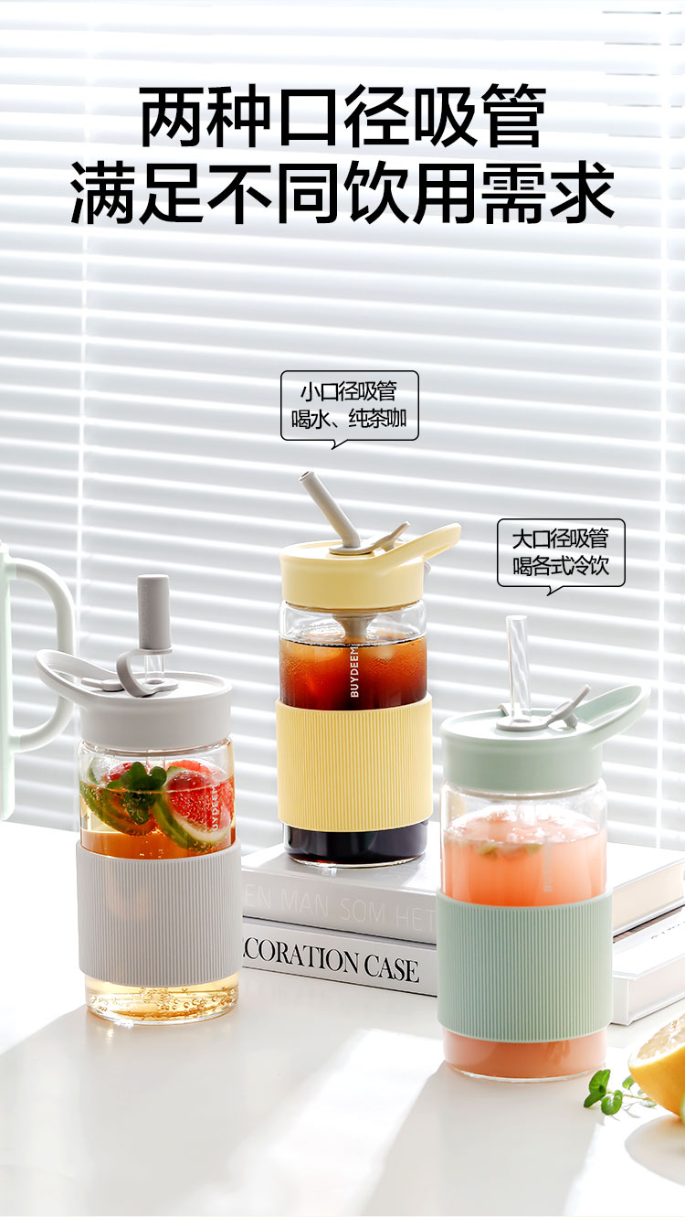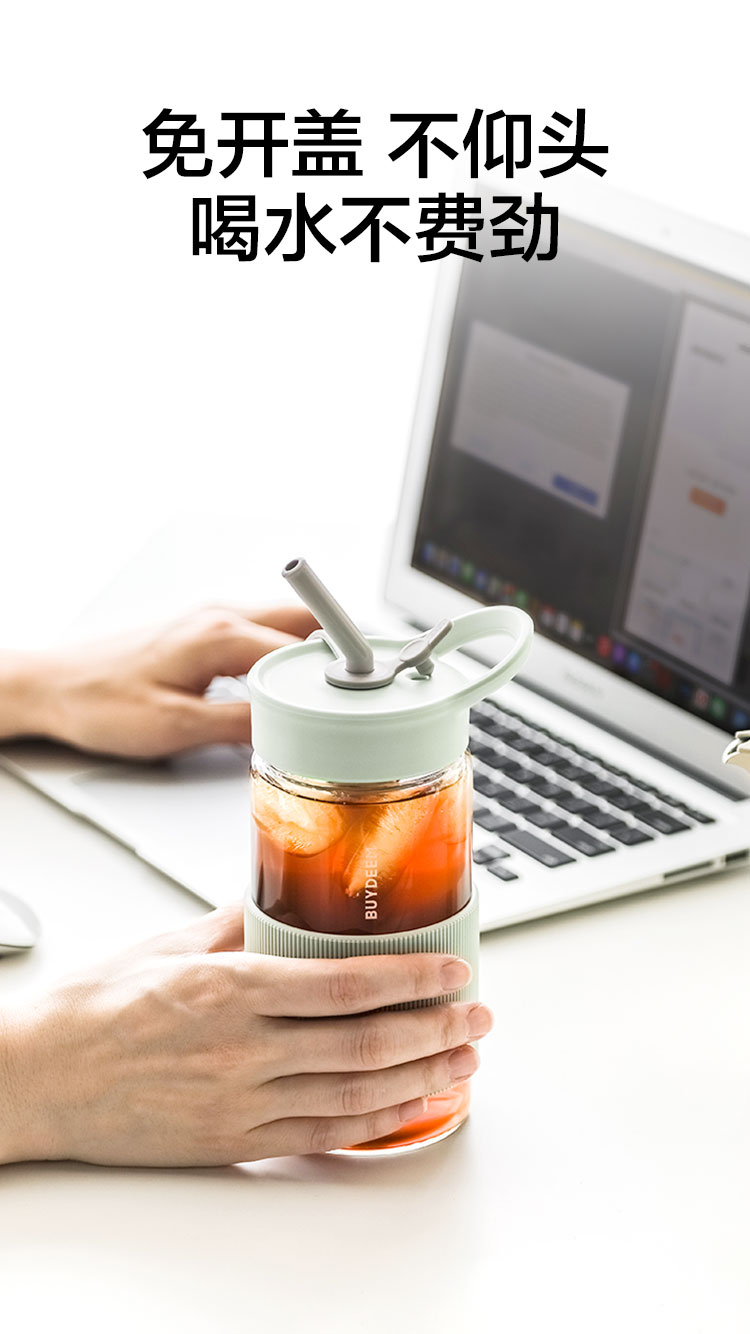 商品名称:北鼎(Buydeem)吸管杯玻璃杯高颜值便携冷饮杯 500ml CD1017(单位:个) 浅杉绿