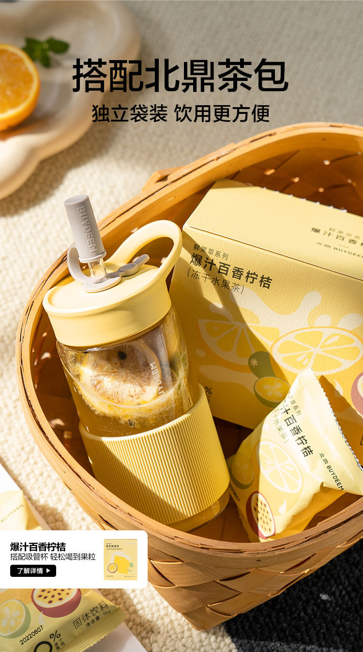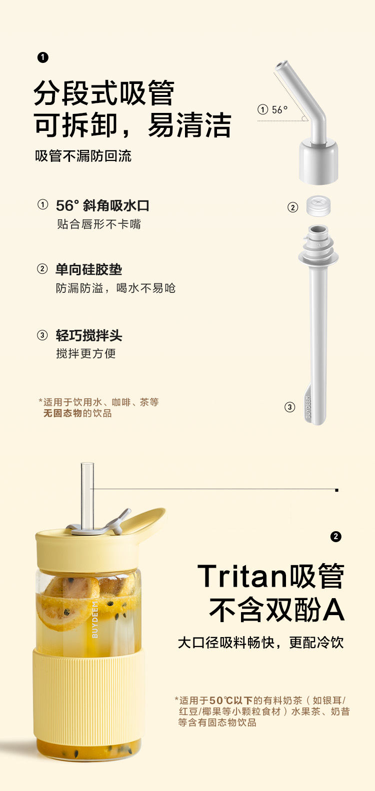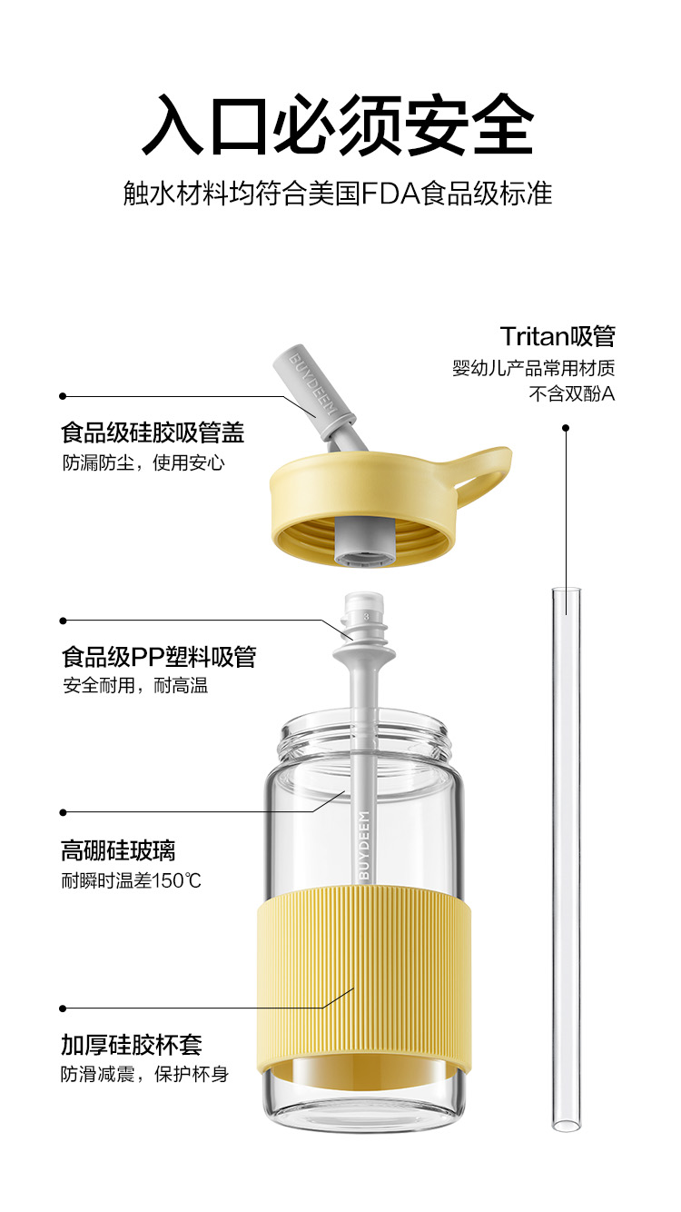 商品名称:北鼎(Buydeem)吸管杯玻璃杯高颜值便携冷饮杯 500ml CD1017(单位:个) 浅杉绿