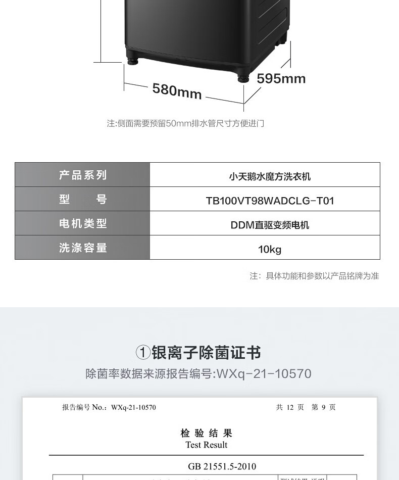 商品名称:小天鹅(LittleSwan)洗衣机全自动波轮家用水魔方防缠绕TB100VT98WADCLG-T01 金属钛