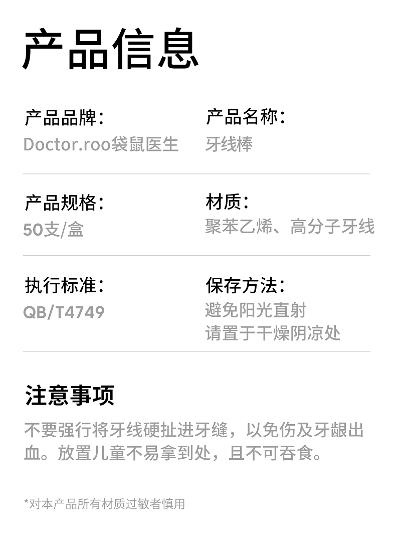 商品名称:袋鼠医生 牙线棒 50支/盒 50支/盒*10盒