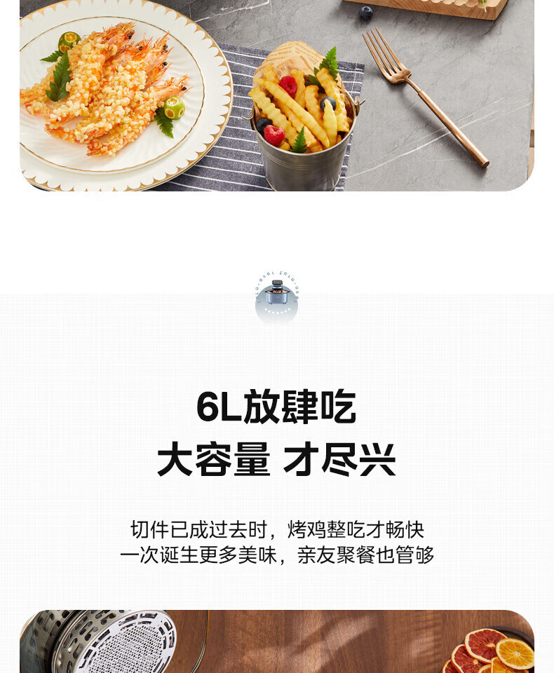 商品名称:美的 家用6L空气炸锅MF-KZC6087(单位:台) 石砾青