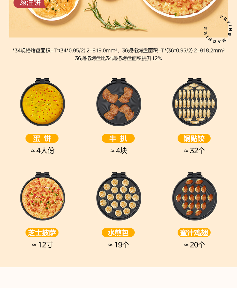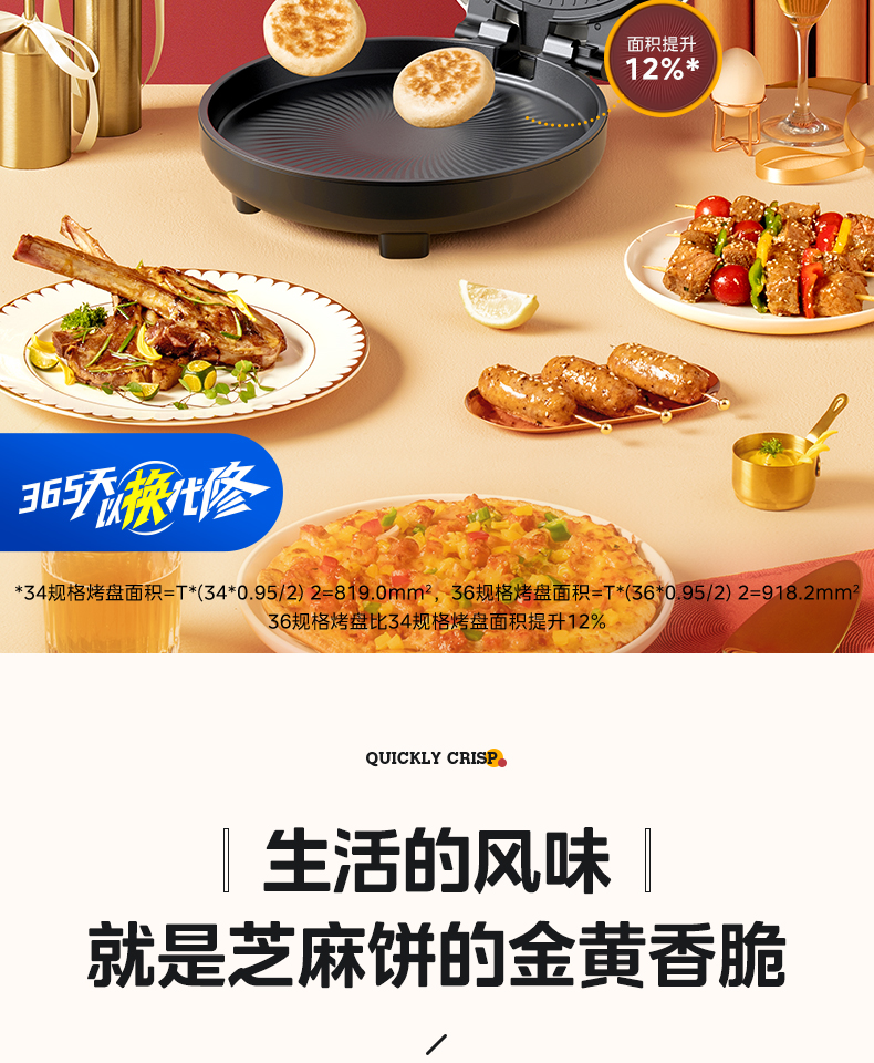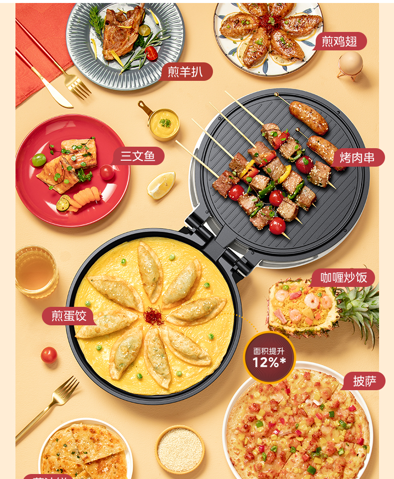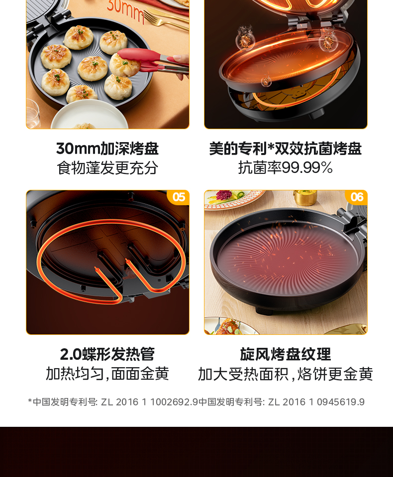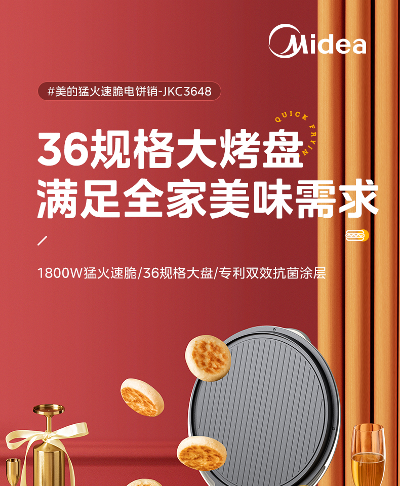 商品名称:美的 家用大功率电饼铛MC-JKC3648(单位:个) 金色