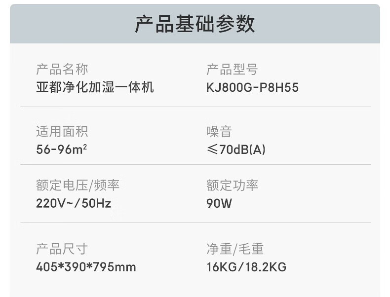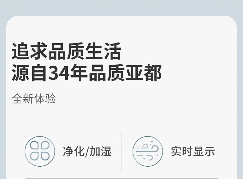 商品名称:亚都 空气净化器除甲醛雾霾 无雾加湿净化器一体 办公室卧室家用 KJ800G-P8H55 单位:台 白色