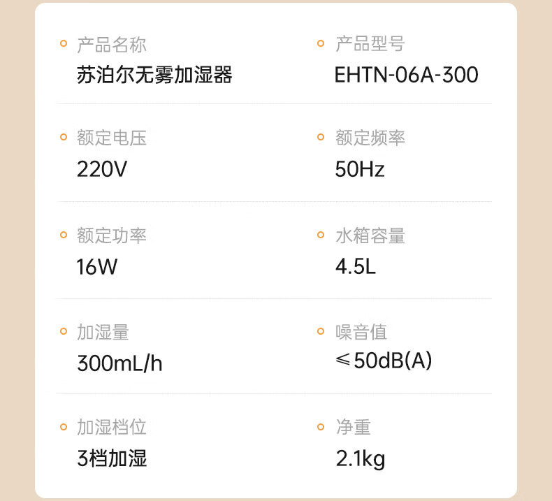 商品名称:苏泊尔(SUPOR)EHTN-06A-300无雾加湿器 4.5L/台 珍珠白