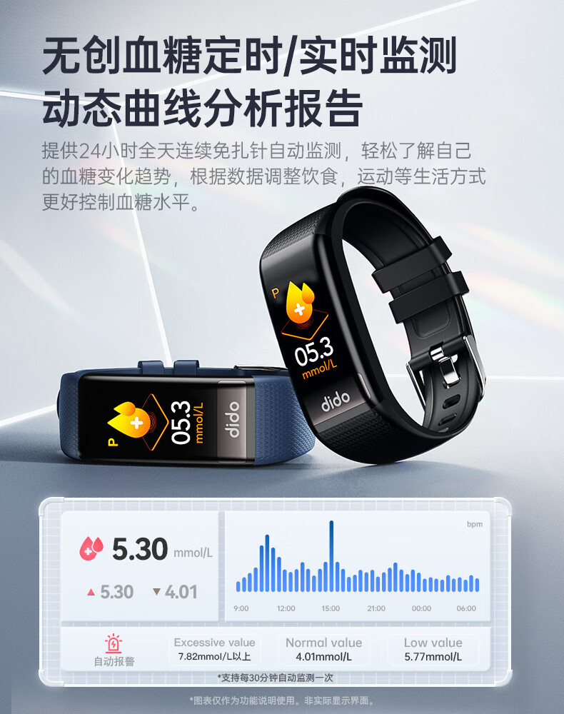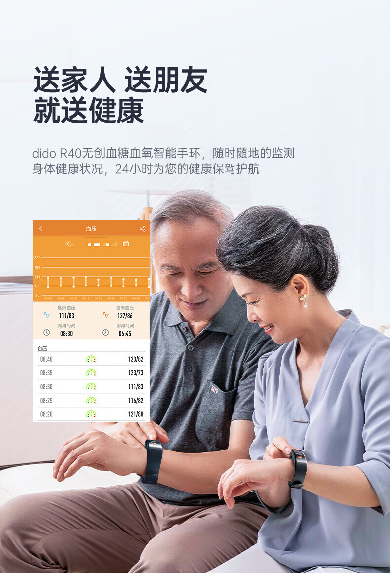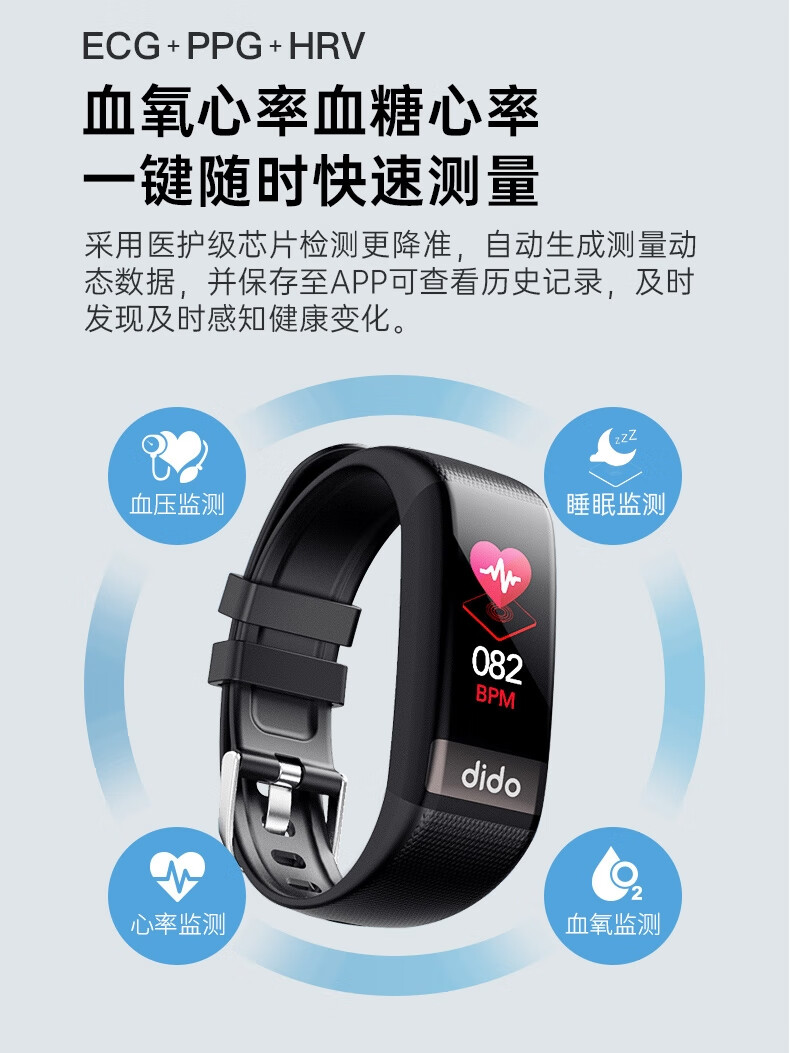 商品名称:dido R20S血糖趋势评估智能手环远程关爱中老年人心率血氧睡眠全天监测男女运动手腕表 单位:个 红色