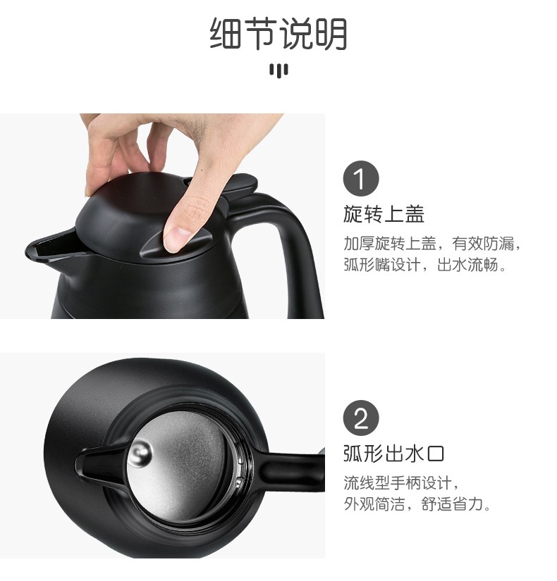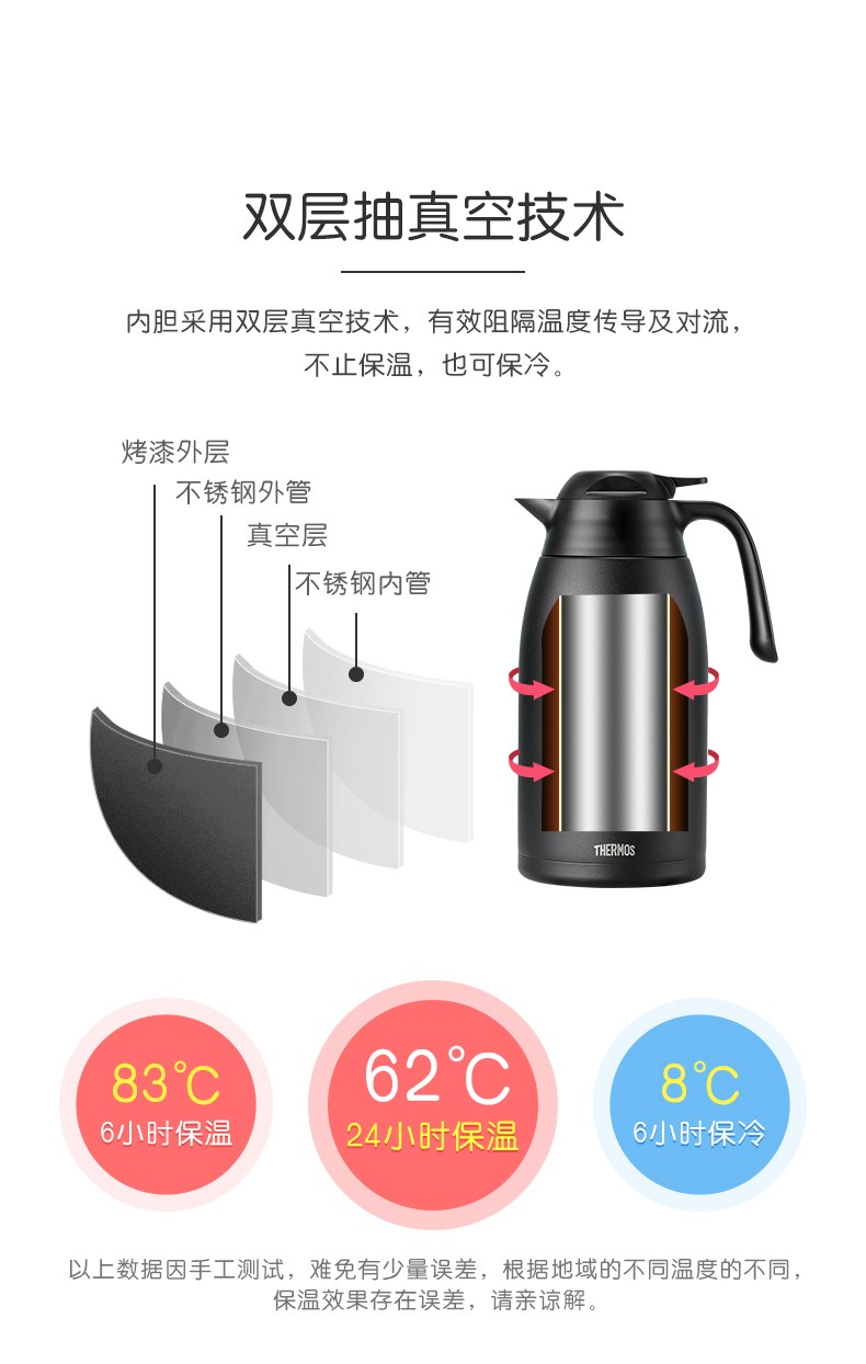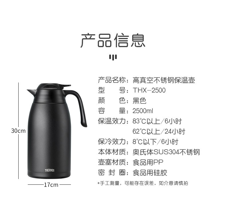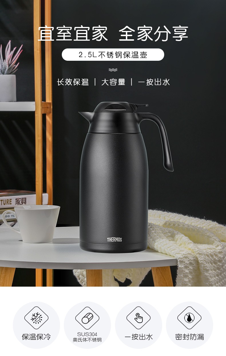 商品名称:膳魔师THERMOS家用保温壶THX-2500-BK 2.5L(单位:个) 黑色