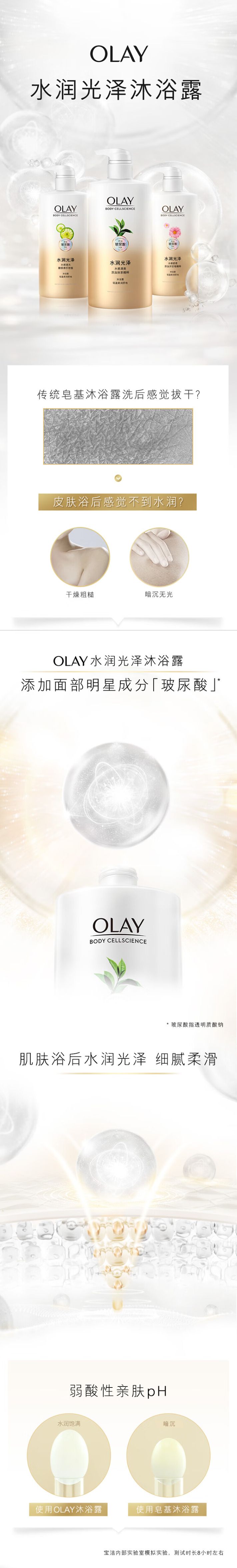 商品名称:OLAY玉兰油水润光泽沐浴露 水感舒柔 洋甘菊730ml 单位:瓶