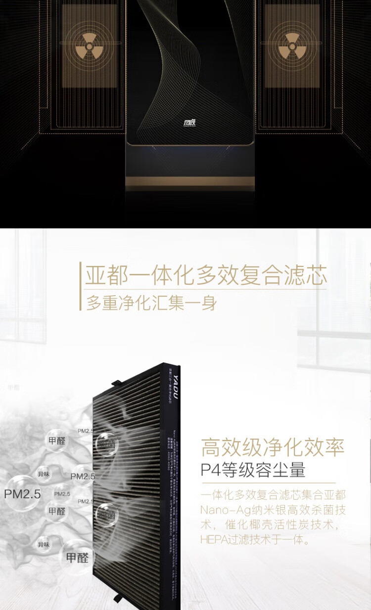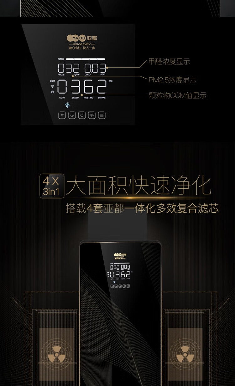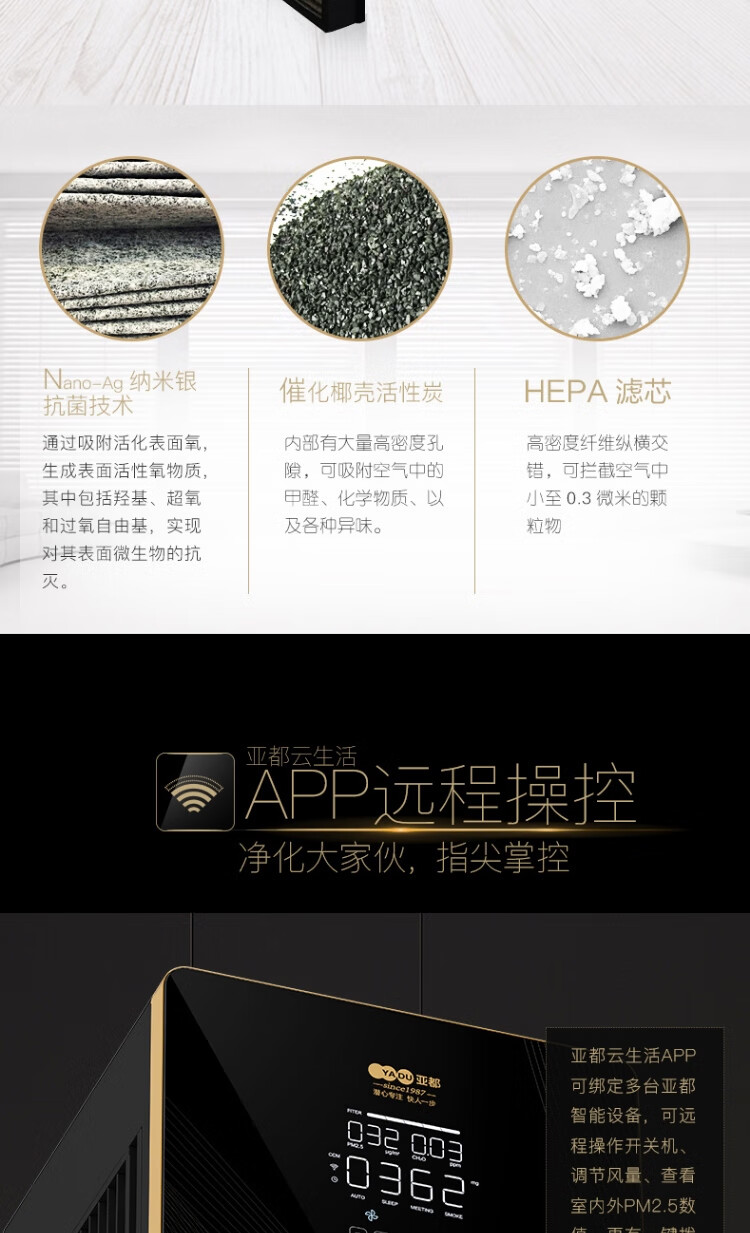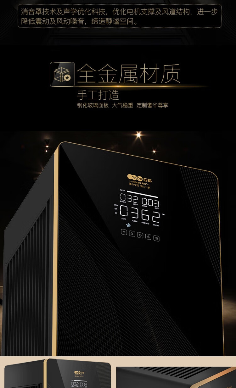 商品名称:亚都空气净化器 办公室家用除甲醛 除雾霾闪净技术双数显四面复合滤网KJ1660G-P16DD单位:台 黑色