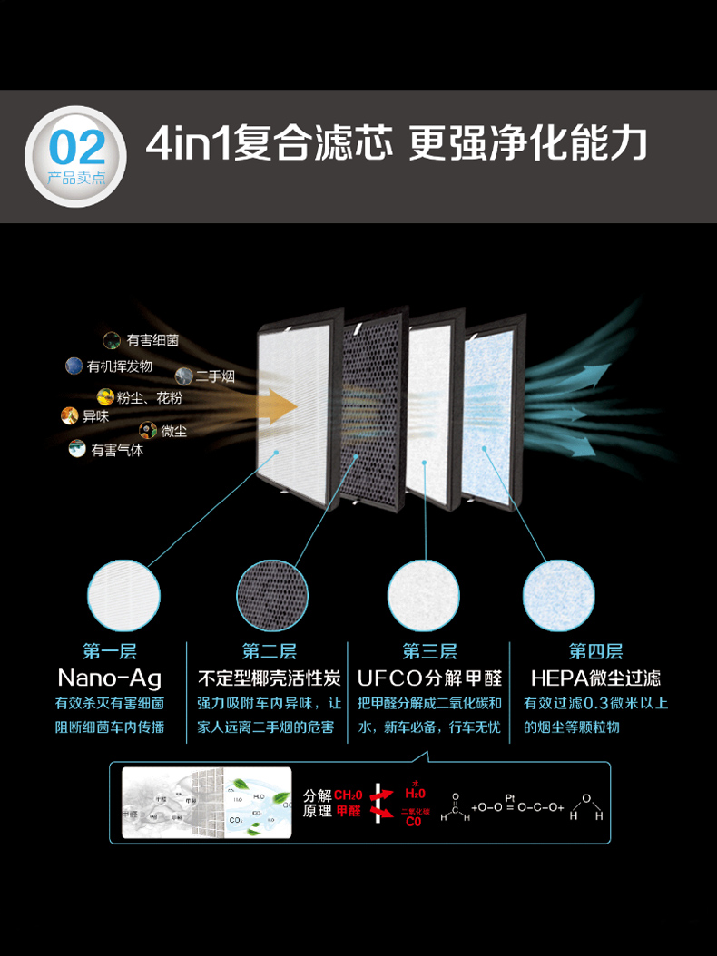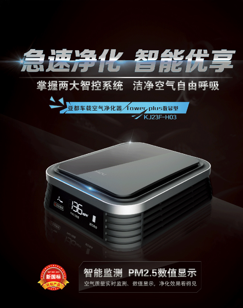 商品名称:亚都(YADU)车载净化器除甲醛PM2.5 浓度显示 四合一复合滤芯 KJ23F_H03 单位:台 黑色