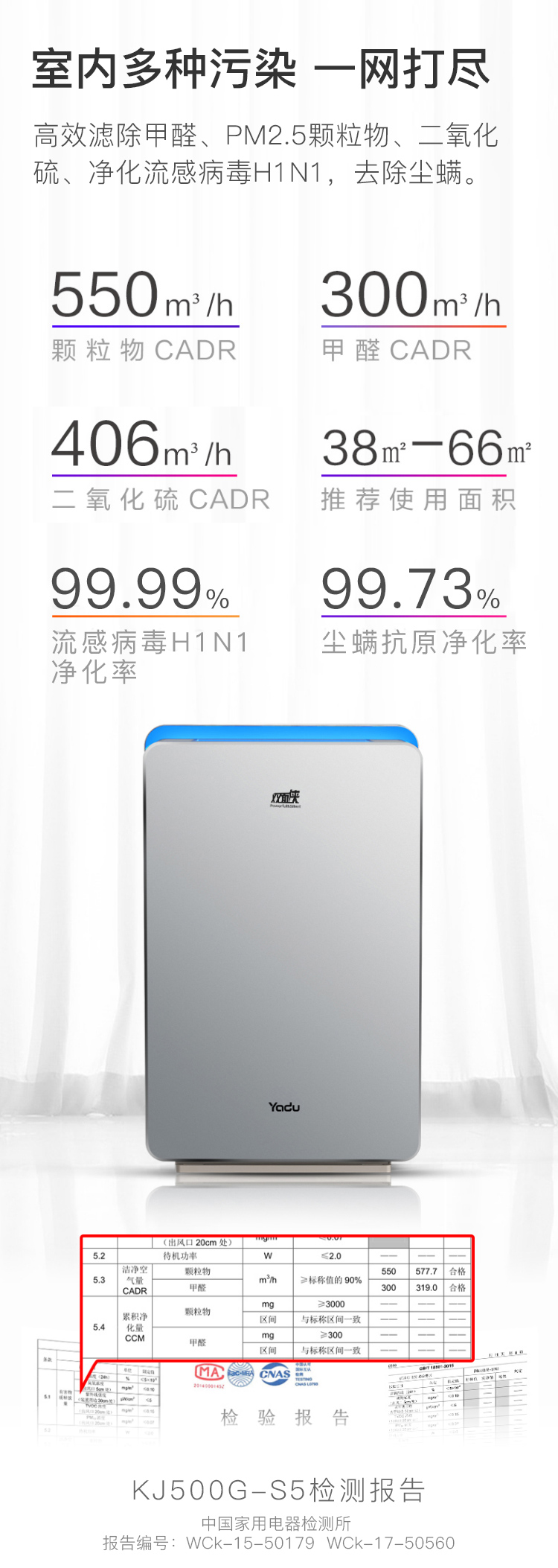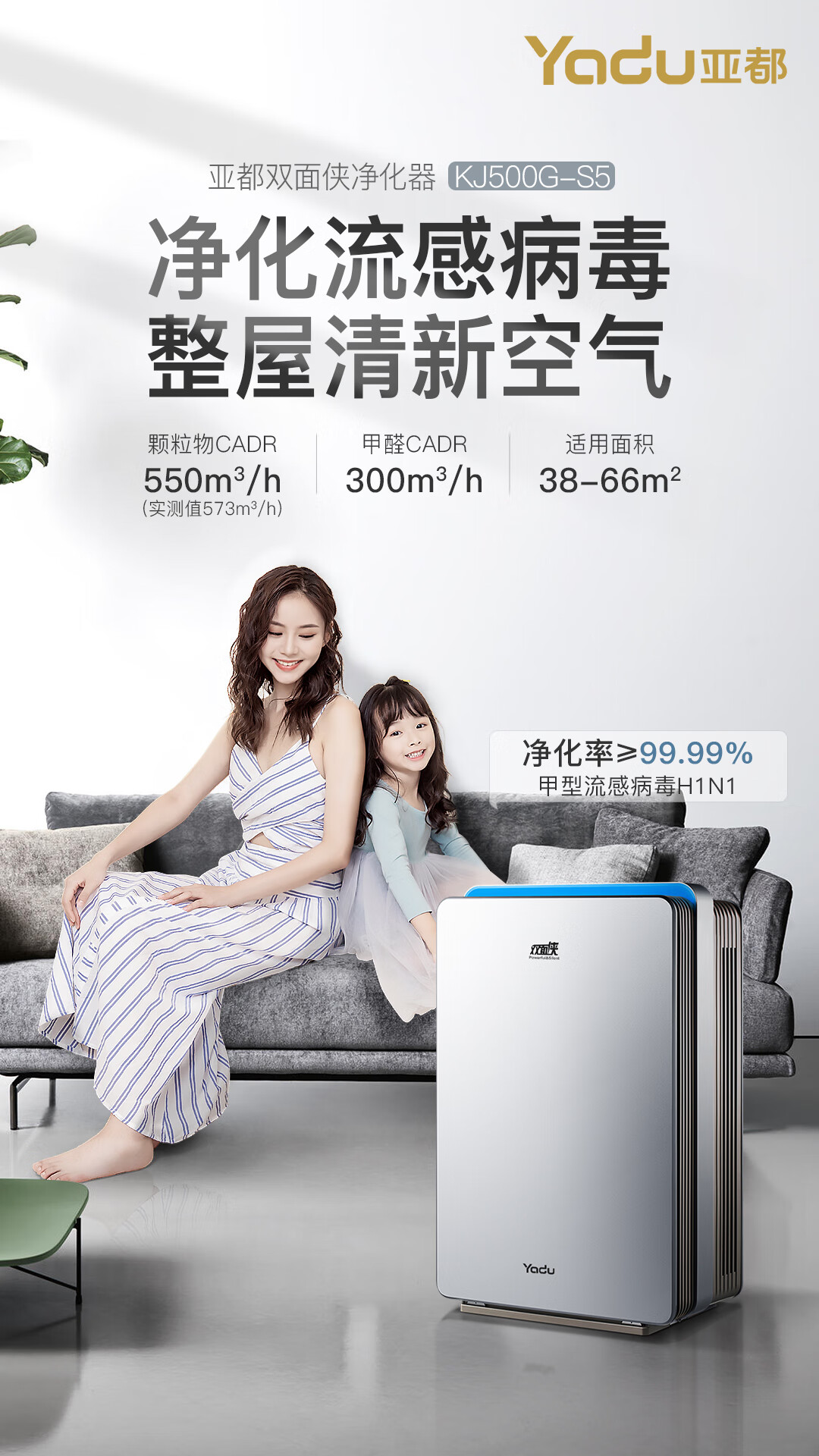商品名称:亚都 空气净化器办公室家用净化器除甲醛雾霾除尘除过敏源KJ500G-S5(APP智控)单位:台 银色