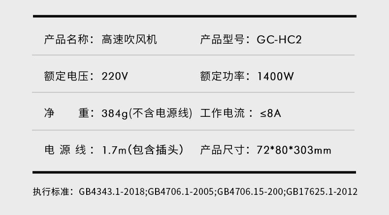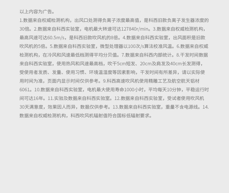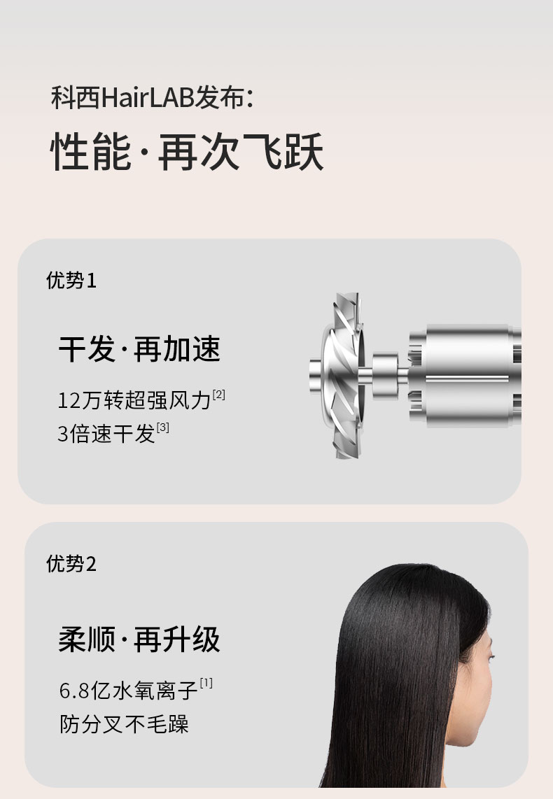 商品名称:科西 高速吹风机6亿负离子电吹风孕妇儿童家用 智能温控护发养发低音电吹风筒 HC2 单位:台 银月白