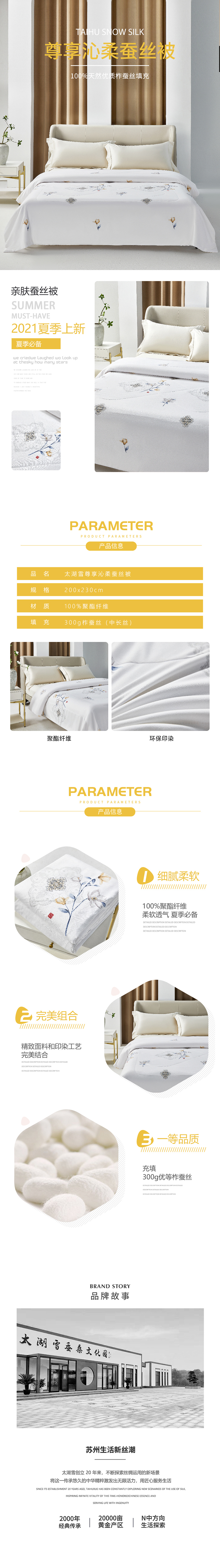商品名称:太湖雪 尊享沁柔蚕丝被300g,200*230cm 单位:套 本白色 花色