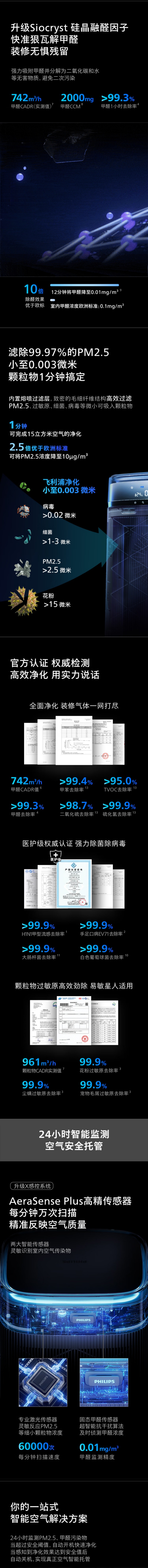 商品名称:飞利浦(PHILIPS)智能空气净化器除甲醛除菌家用母婴友好 AC9008/00 单位:台 灰