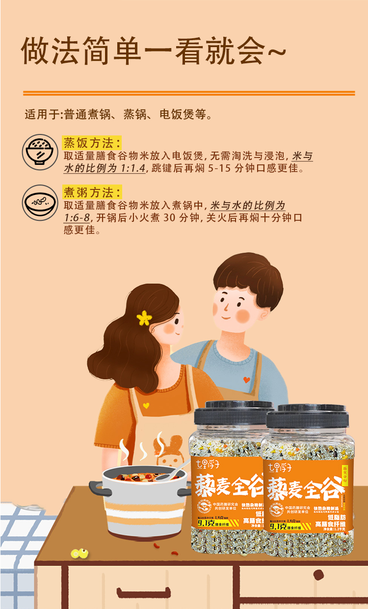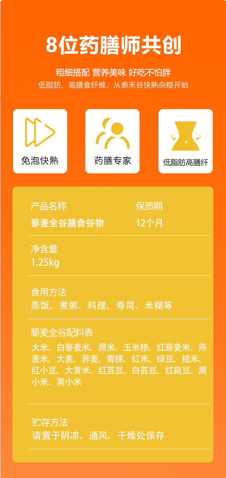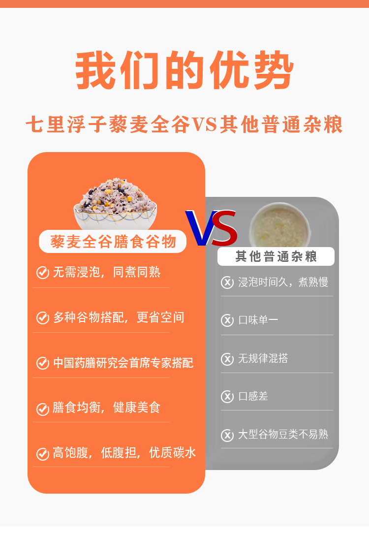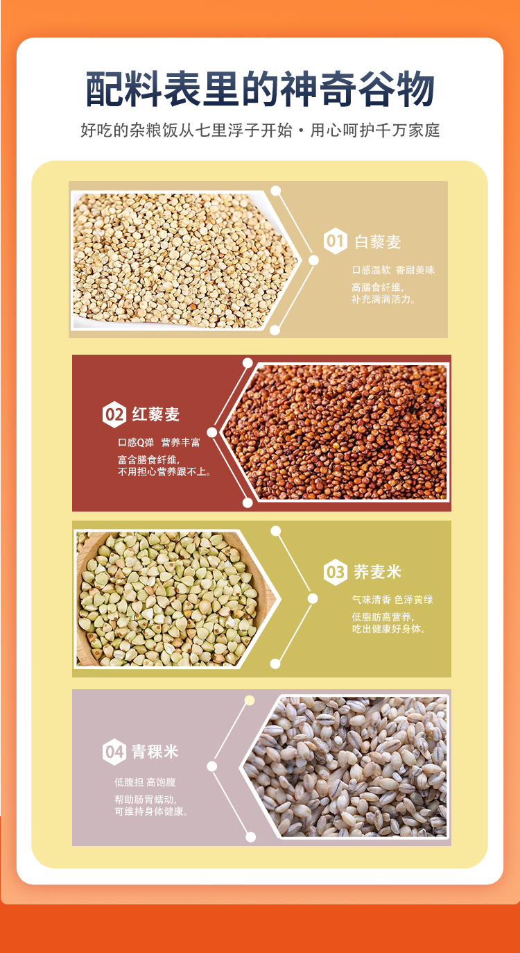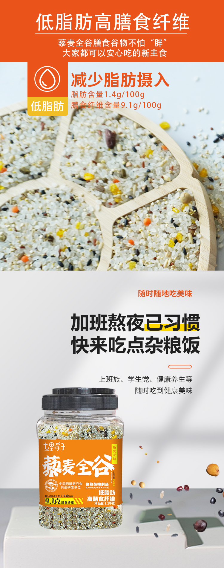 商品名称:七里浮子藜麦全谷快熟膳食谷物米1.2kg 罐