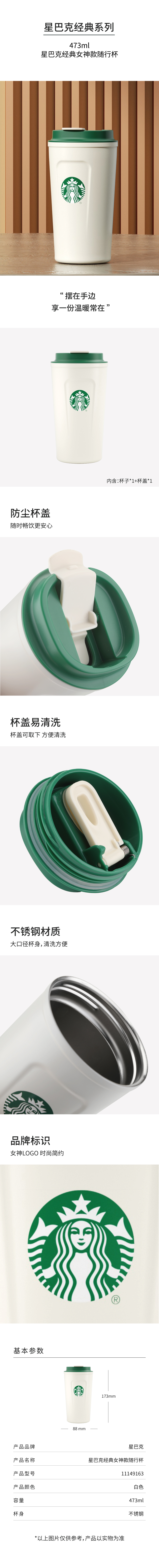 商品名称:星巴克Starbucks经典女神款随行杯11149163(单位:个) 白色