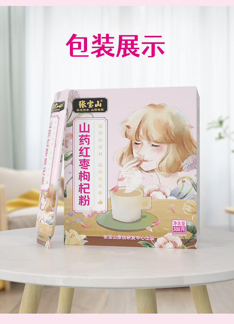 商品名称:【张宝山】红枣枸杞山药粉300克(盒) 红枣枸杞山药粉300克(盒)