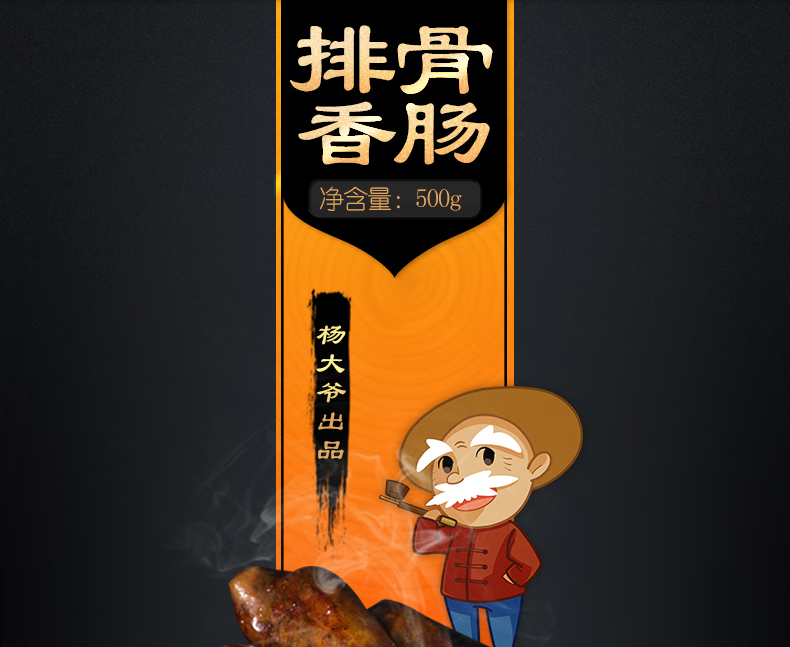 商品名称:杨大爷烟熏排骨香肠500G/袋 烟熏排骨香肠500G/袋