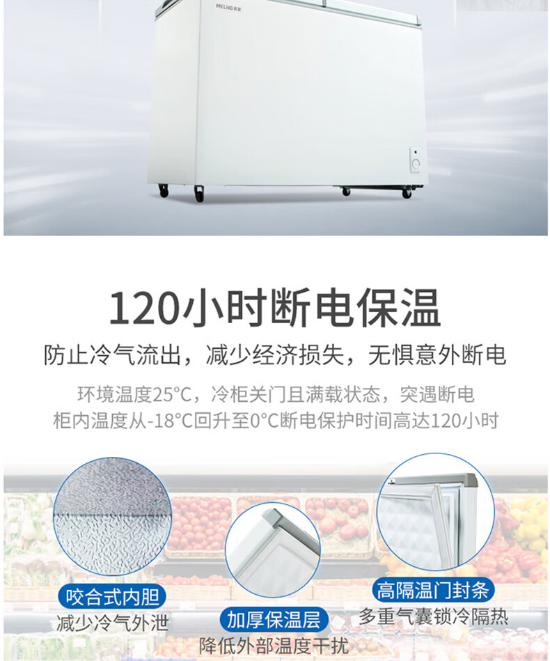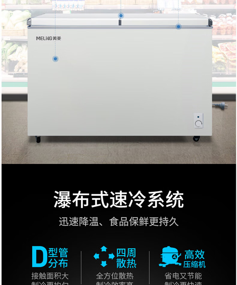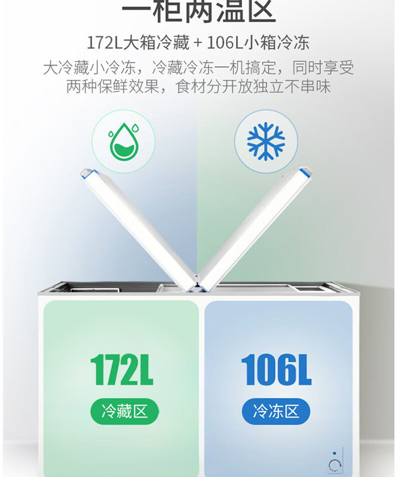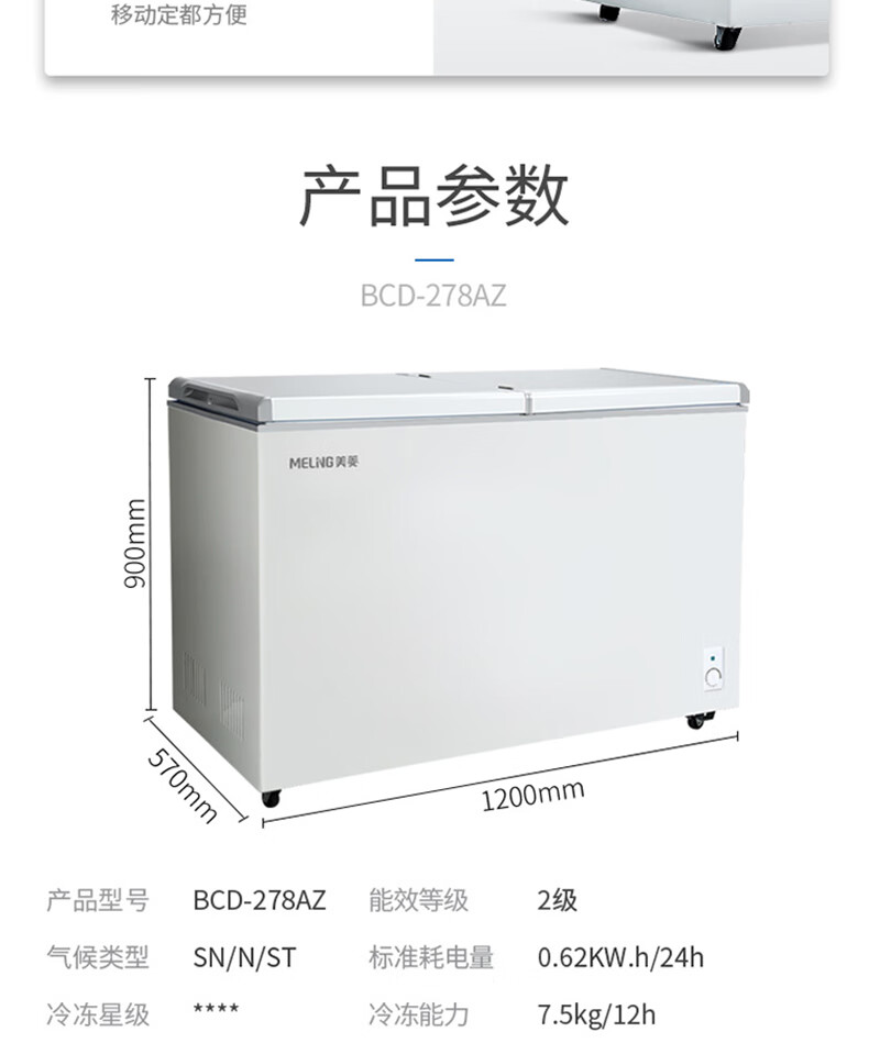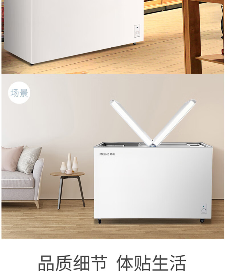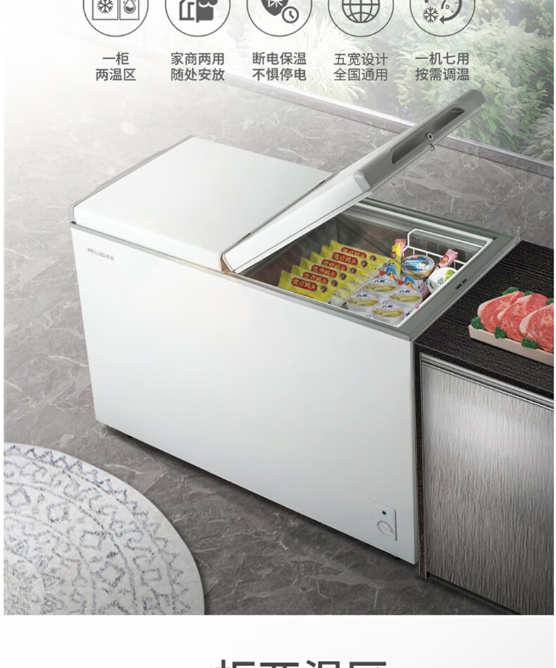 商品名称:美菱(MELING)冰柜家用278升 卧式冷藏冷冻双温冷柜 蝶形双门速冻雪柜BCD-278AZ 台 白色