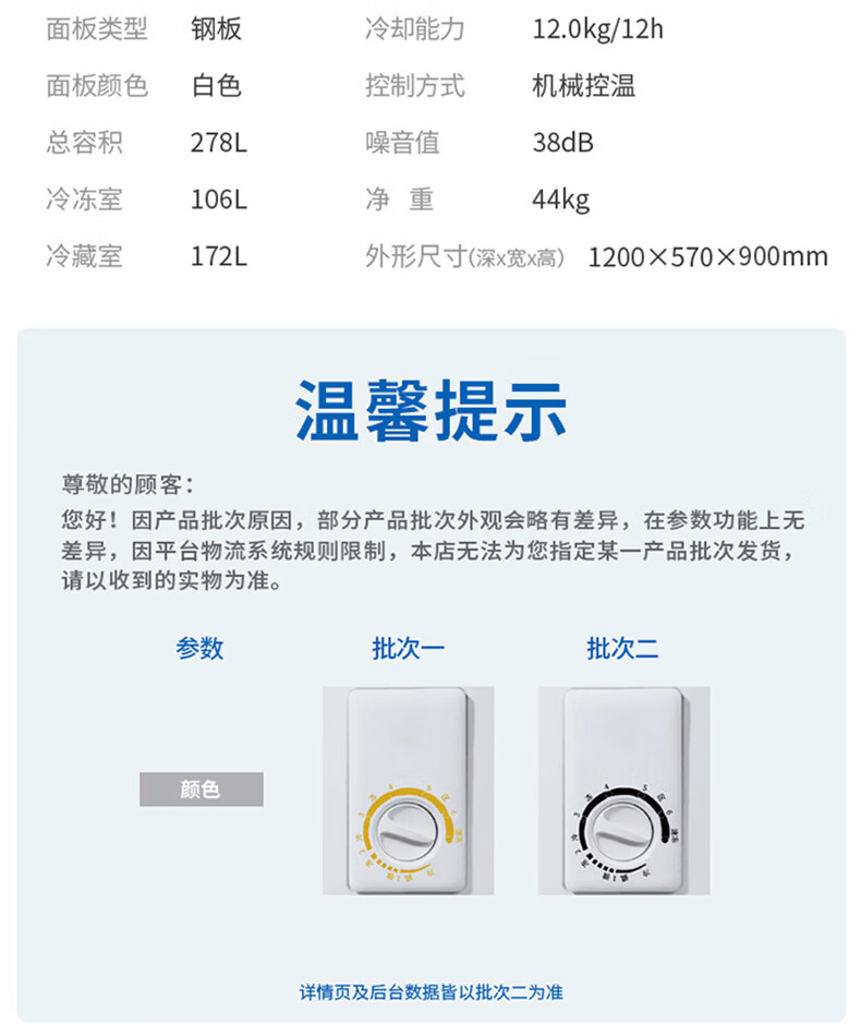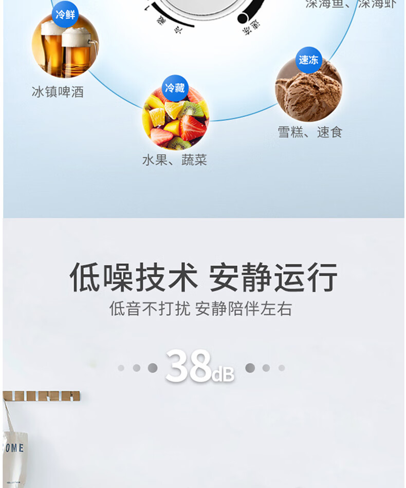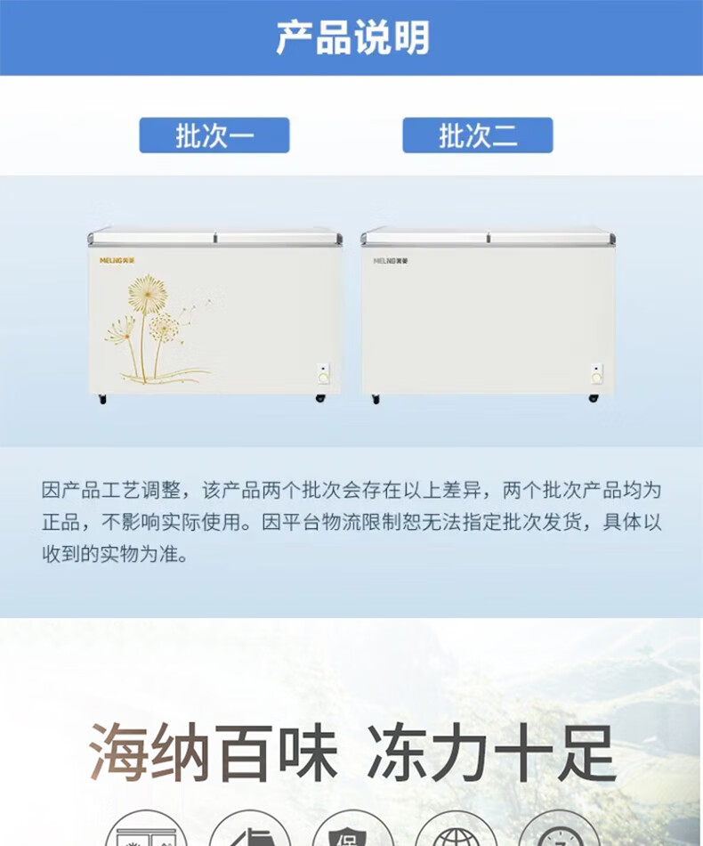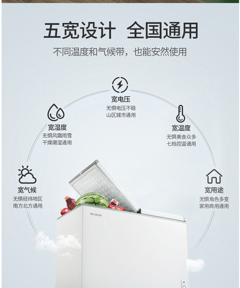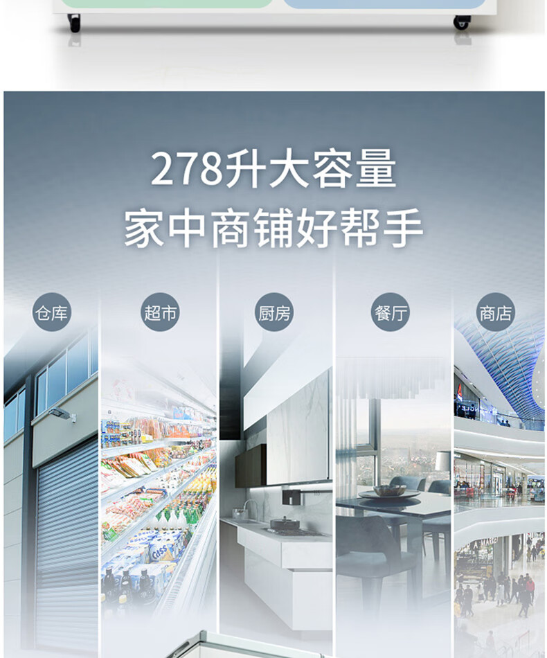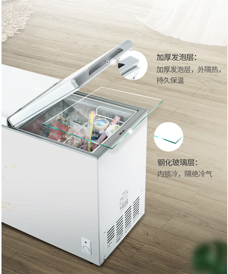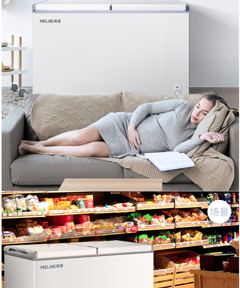 商品名称:美菱(MELING)冰柜家用278升 卧式冷藏冷冻双温冷柜 蝶形双门速冻雪柜BCD-278AZ 台 白色