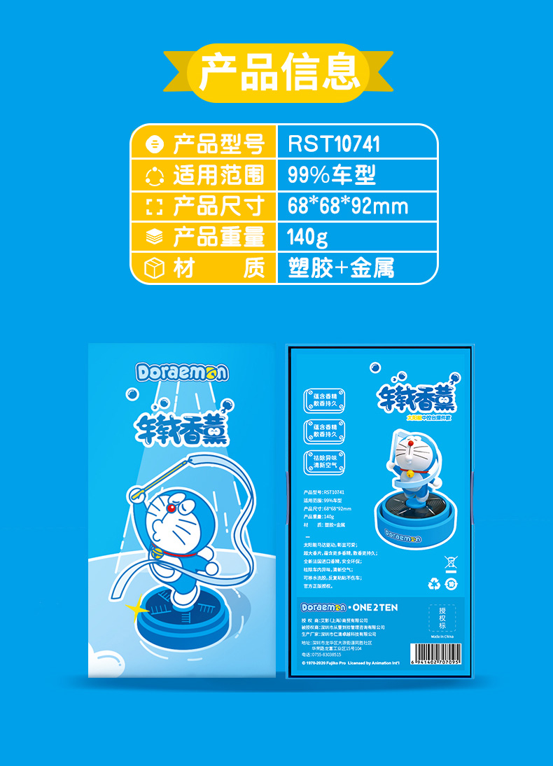 商品名称:ROCK 哆啦A梦太阳能旋转香薰 RST10741(单位:个)蓝色 蓝色