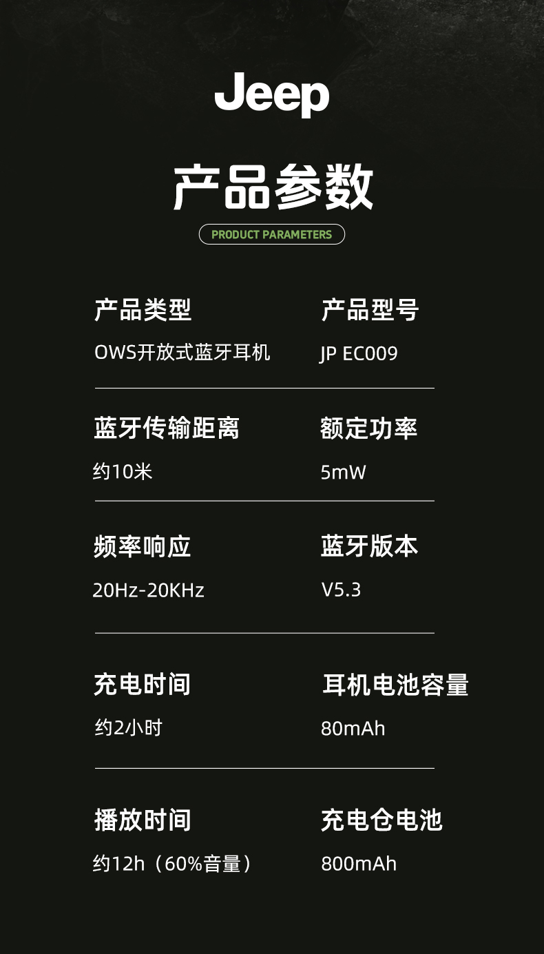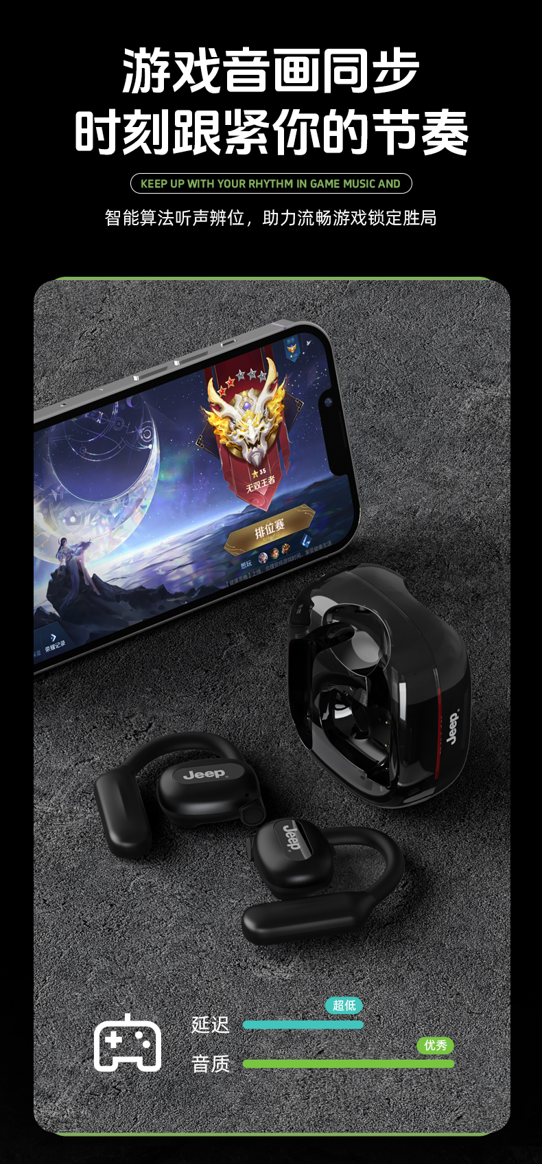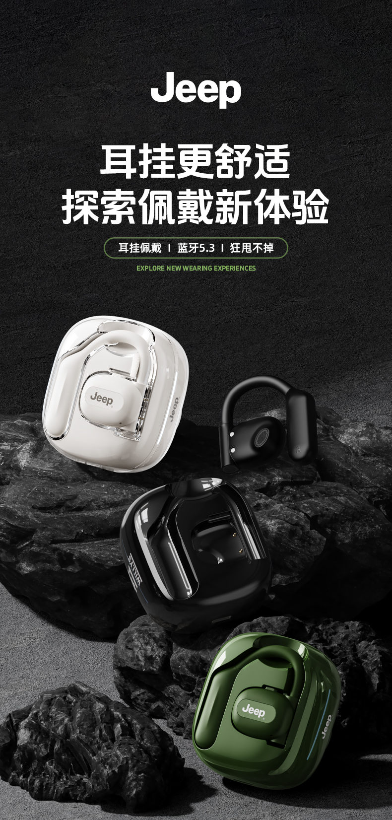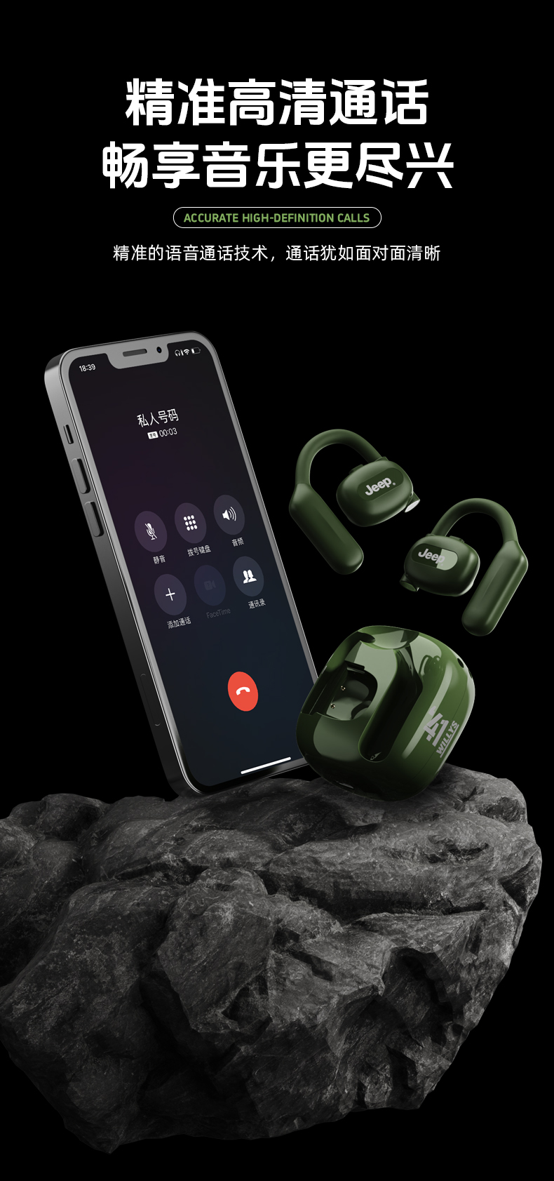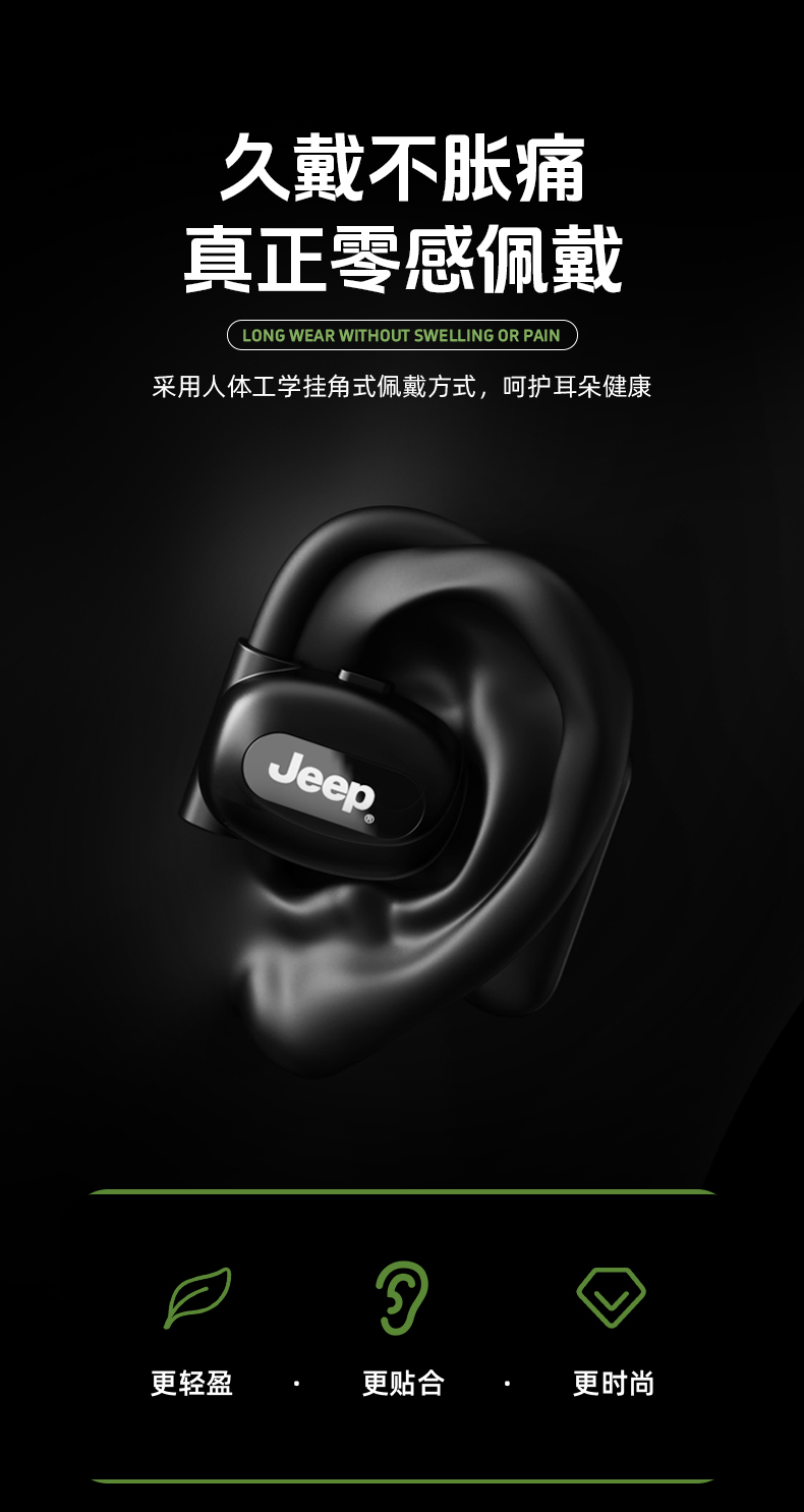 商品名称:Jeep吉普骨传导蓝牙耳机 无线耳机不入耳式运动跑步长续航通话降噪耳机适用苹果华为小米 单位:副 米白色