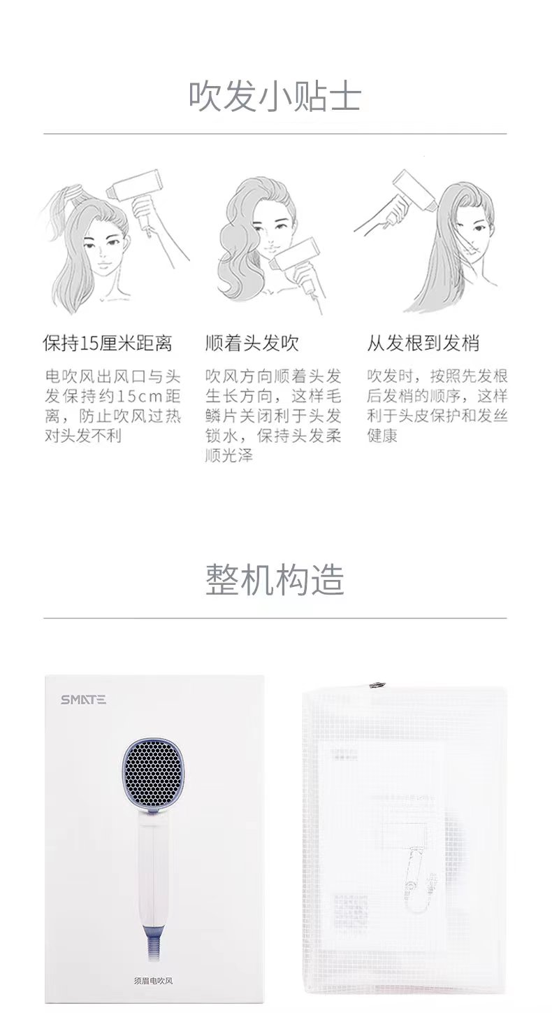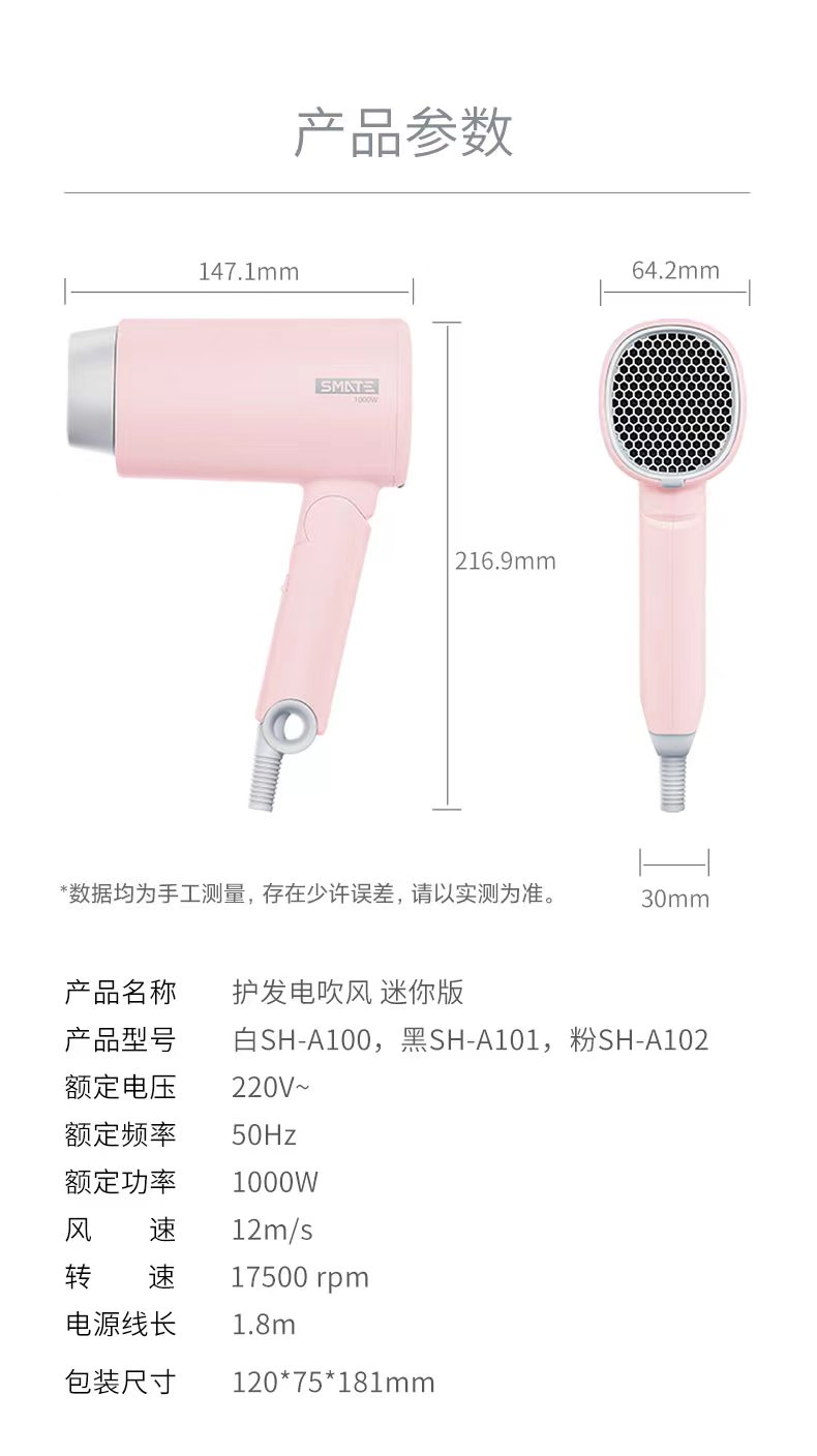 商品名称:须眉电吹风SH-A100(白色)单位:台 栀子白