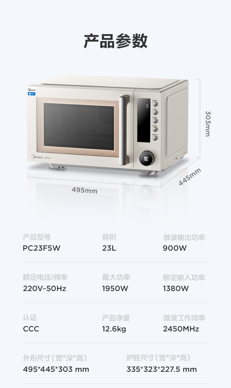 商品名称:美的(Midea)变频微波炉PC23F5W(单位:台) 杏色